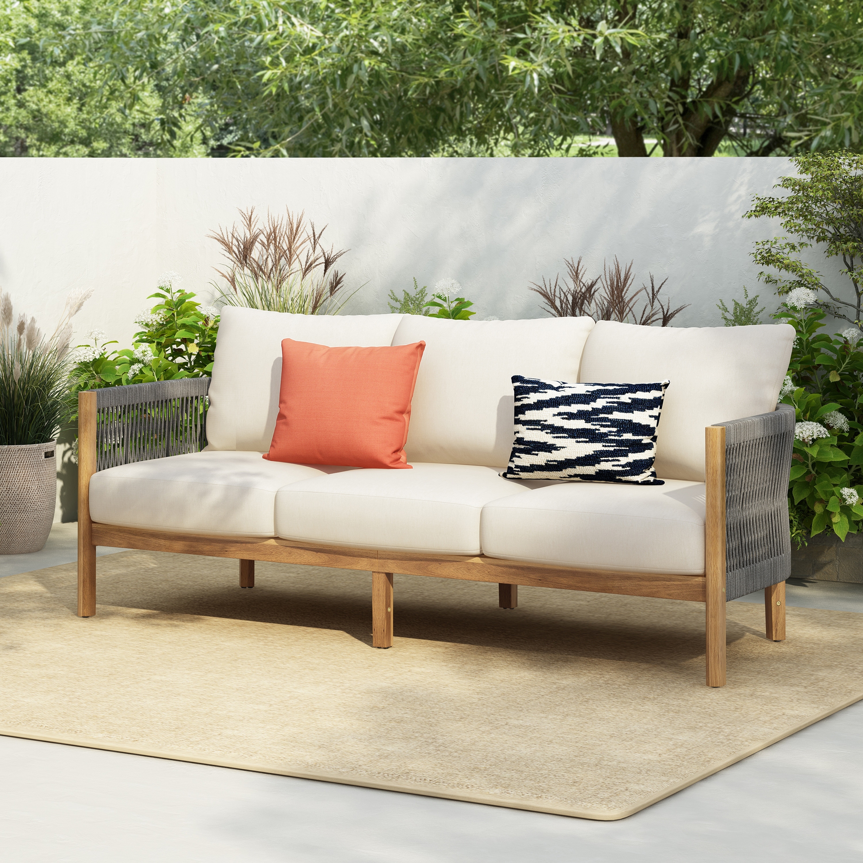This garden sofa set is all about being stylish and practical, making it a great choice for lounging outside on your balcony or patio.