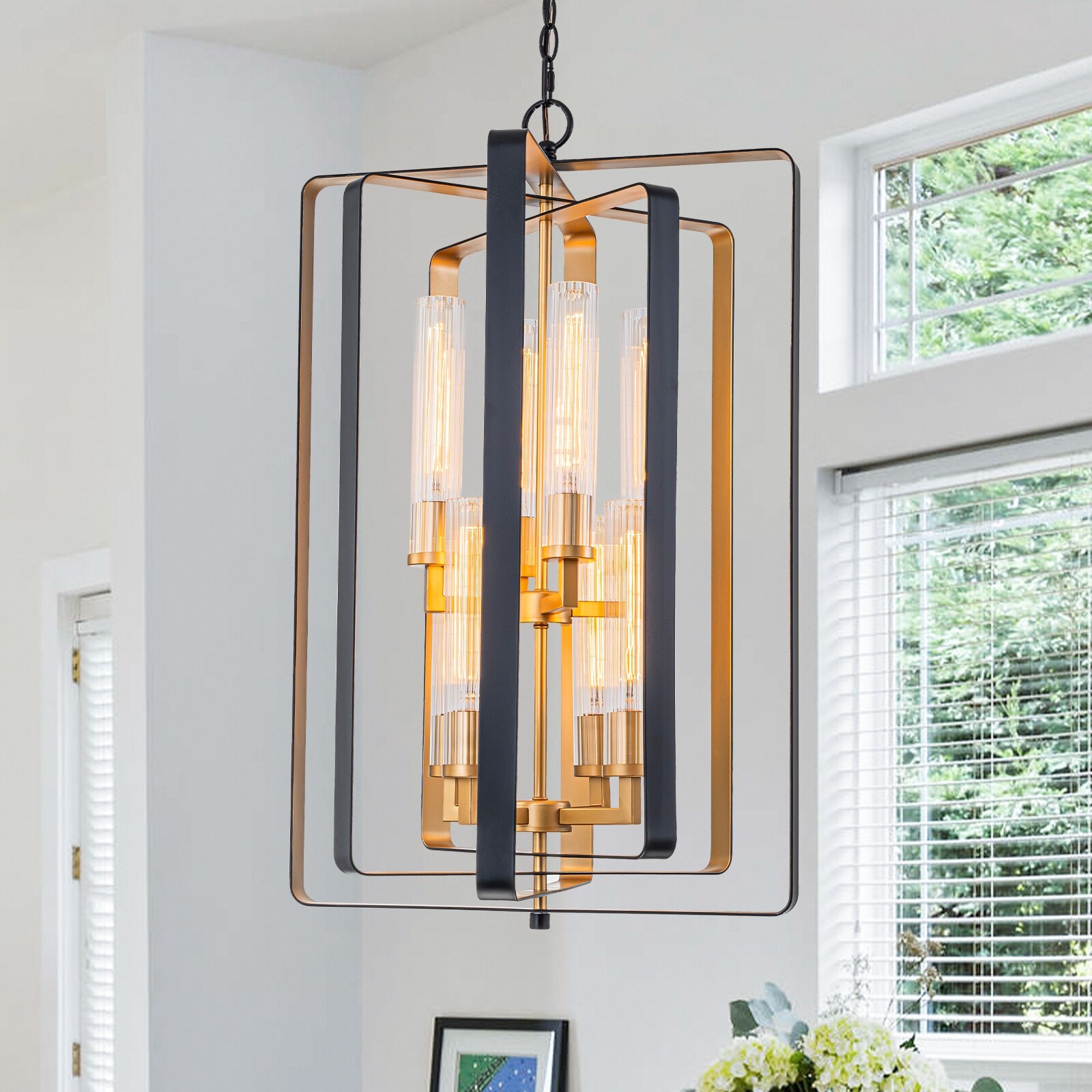 19.7" 8-Light Modern Black Gold Pendant ... |