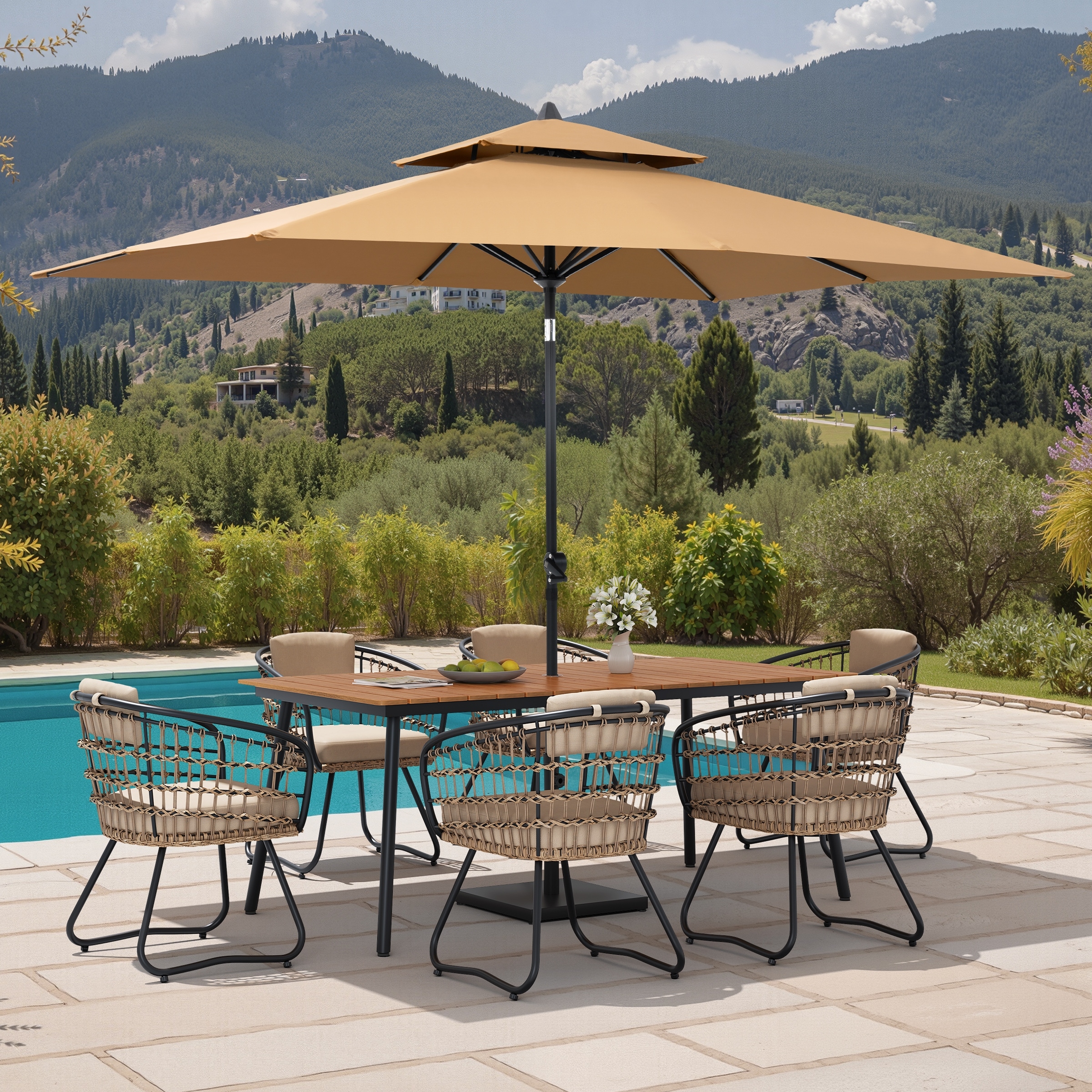 9PC Outdoor Patio Dining Set Wood-Like A... |
