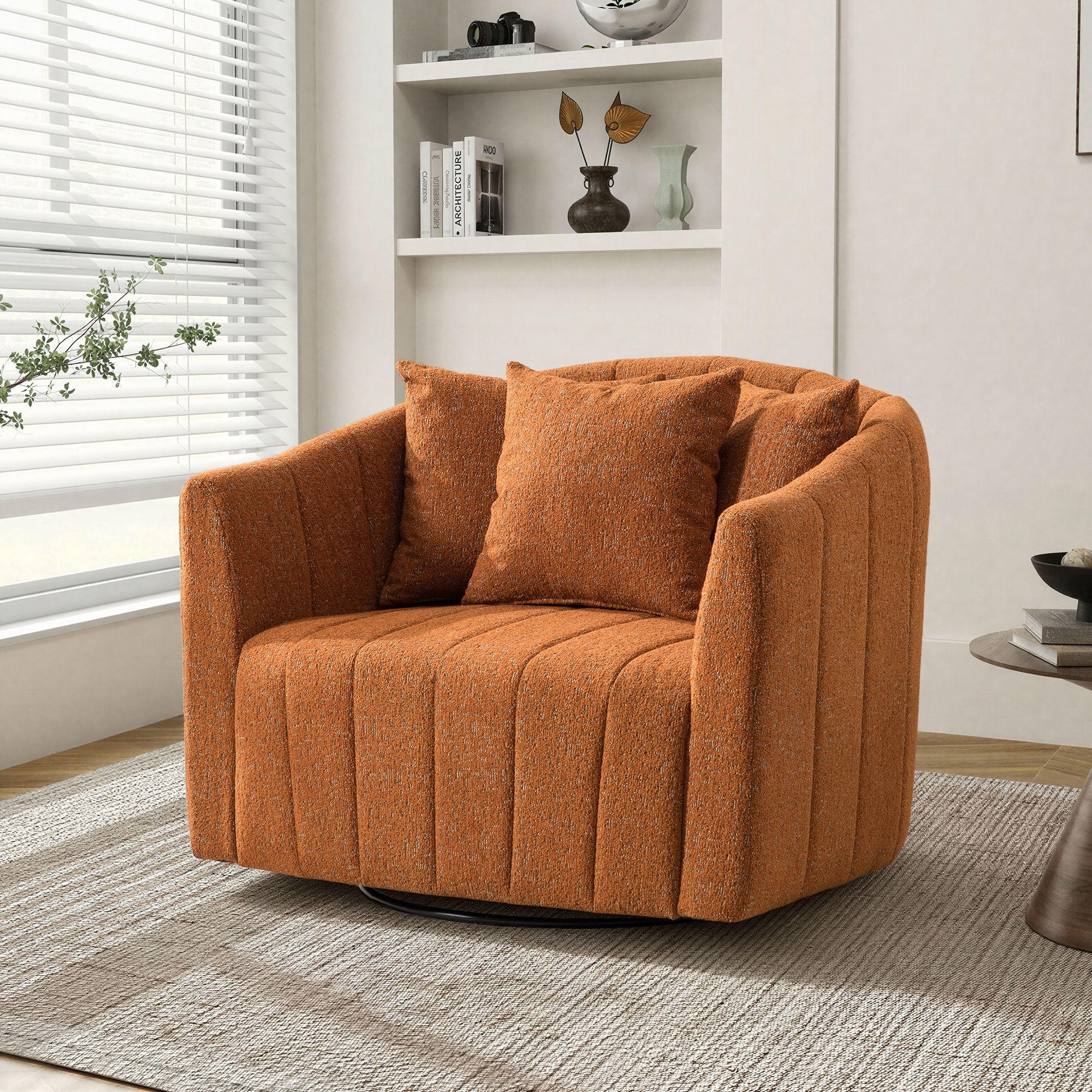 39"W Chenille Swivel Accent Chair, Tufte... |