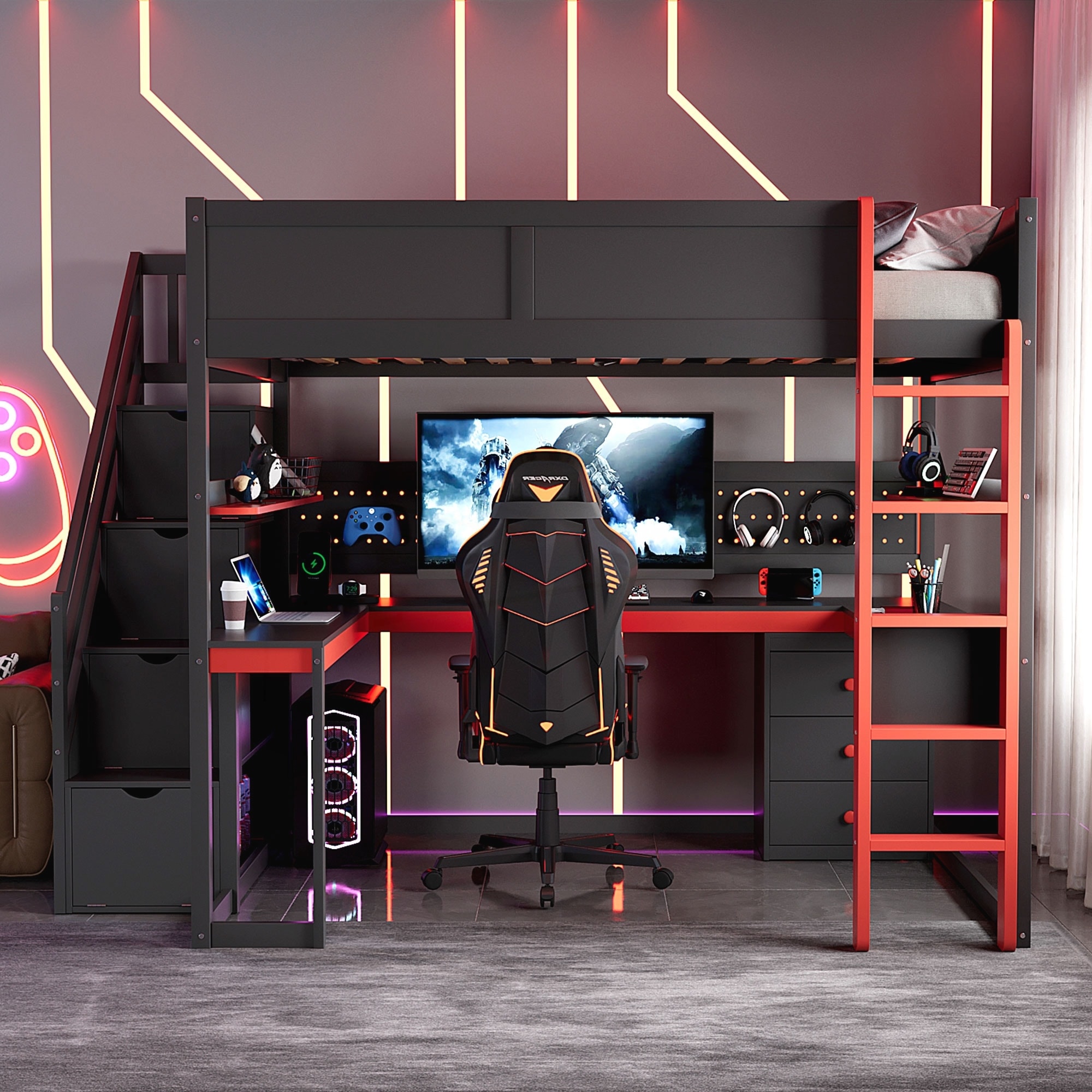 Full Size Wooden Gaming Loft Bed with St... |