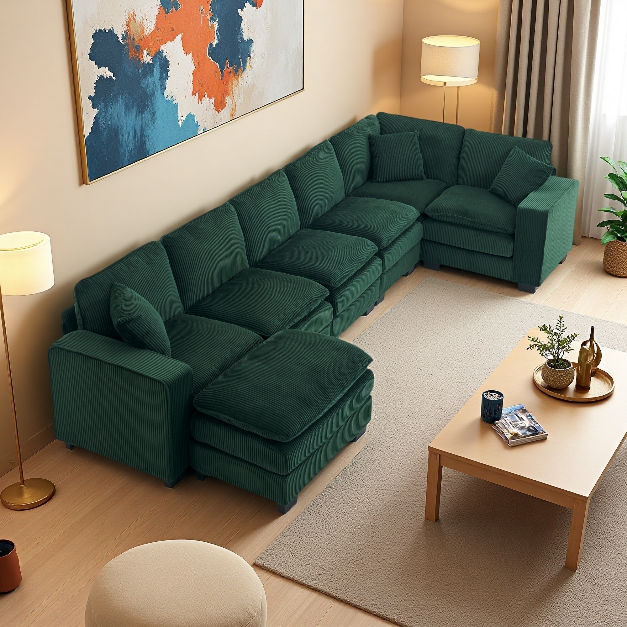 143.7" U-Shaped Corduroy 6-Seater Sectio... |