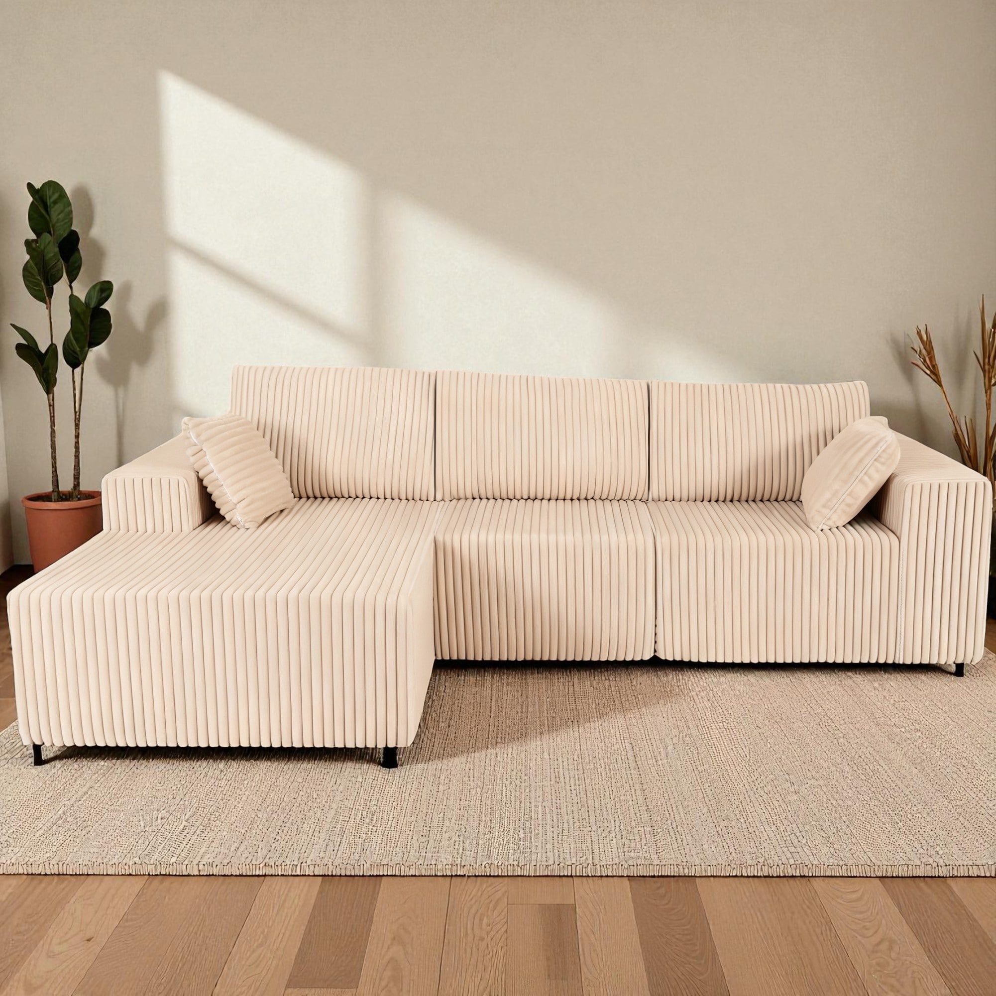 Combined project, multi-functional design: This L-shaped sofa not only has a three-seat design, but also comes with padded cashmere for extra comfort.