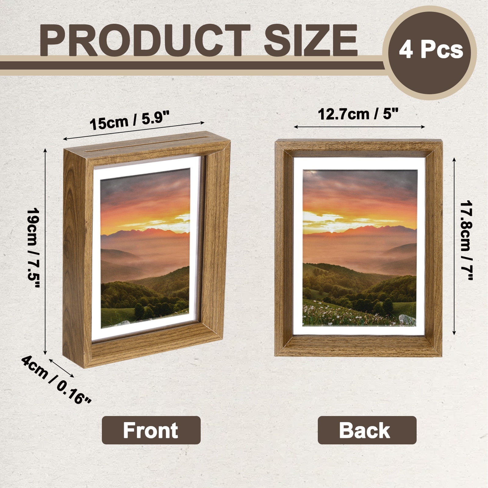 What is this? This floating picture frame is made of wood and acrylic materials, with a double-layer design to achieve a perspective floating effect. It can also insert photos back-to-back to display an additional picture.