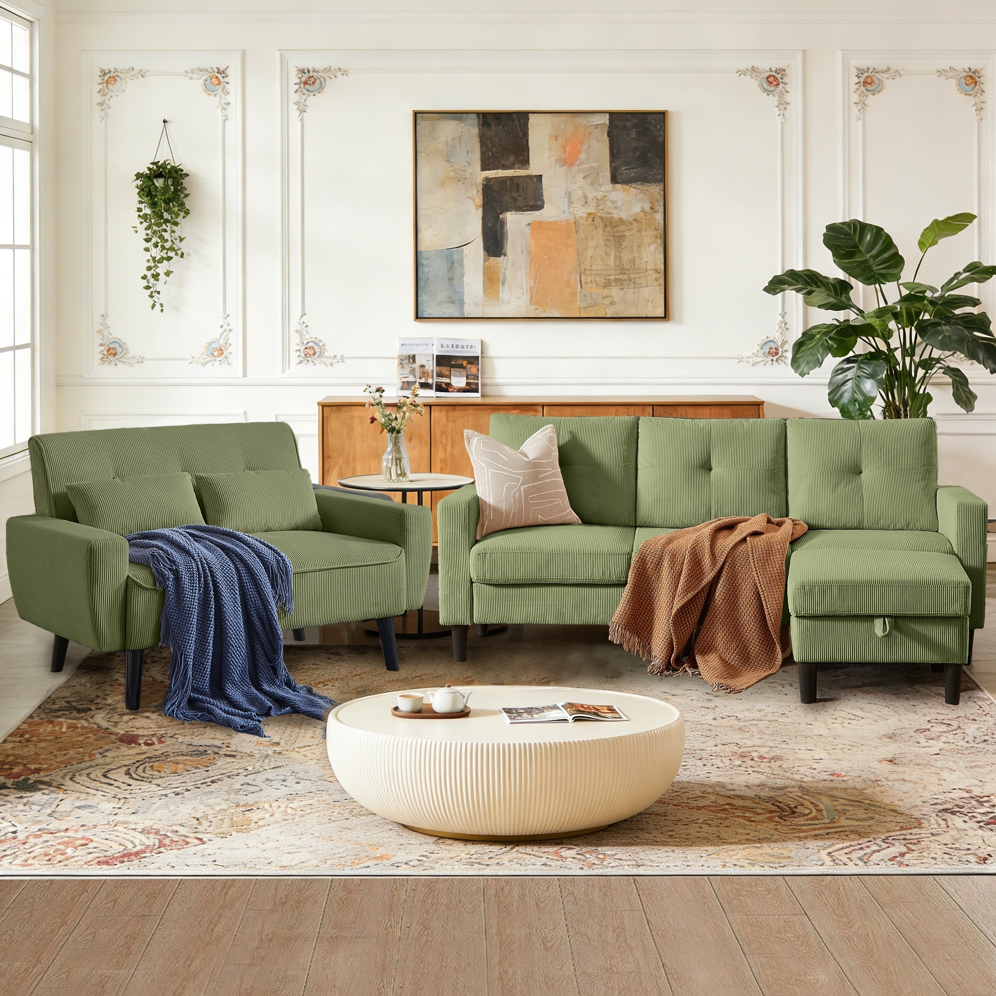 79.14" Corduroy 3 Piece Living Room Set ... |