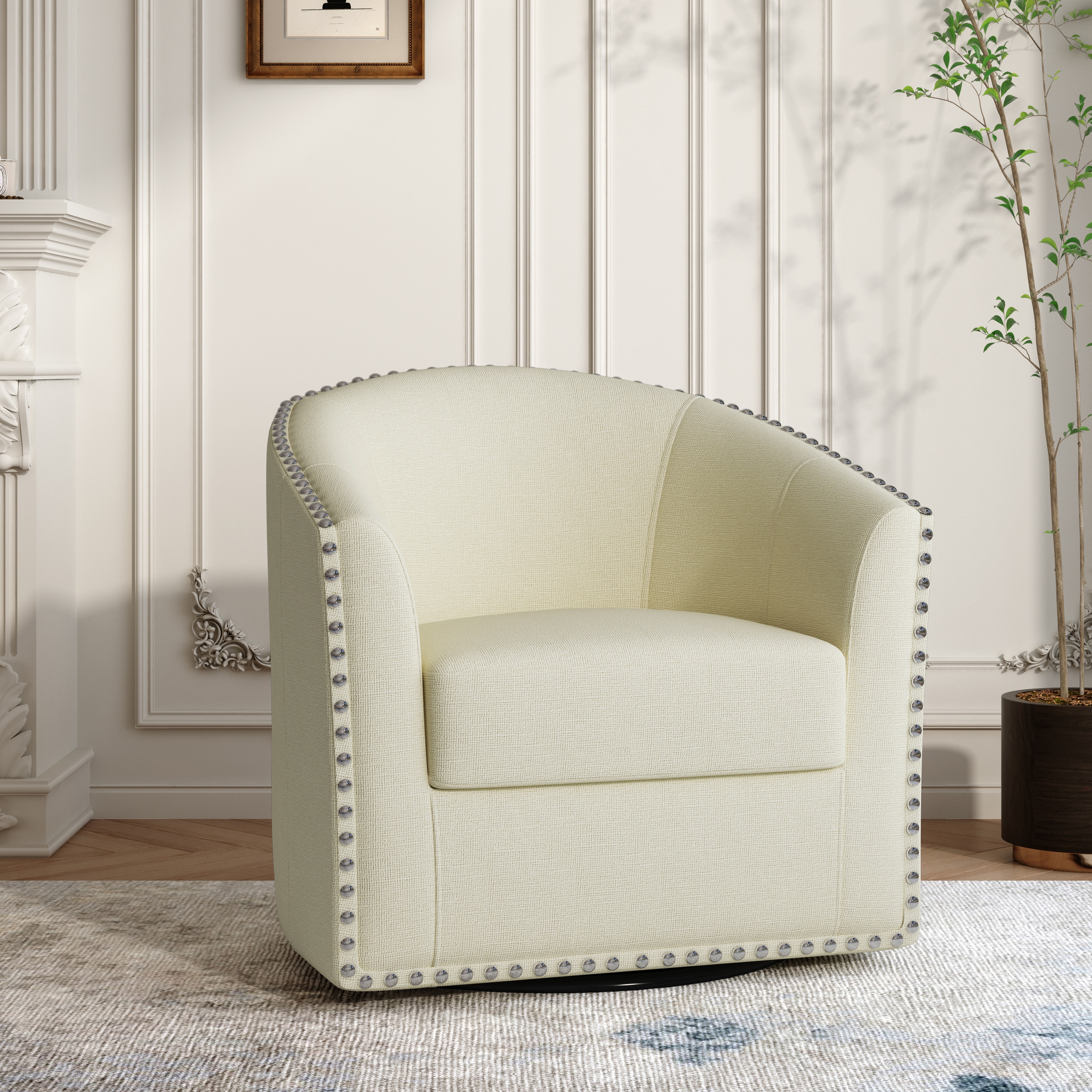 Upholstered Swivel Barrel Chair Living R... |