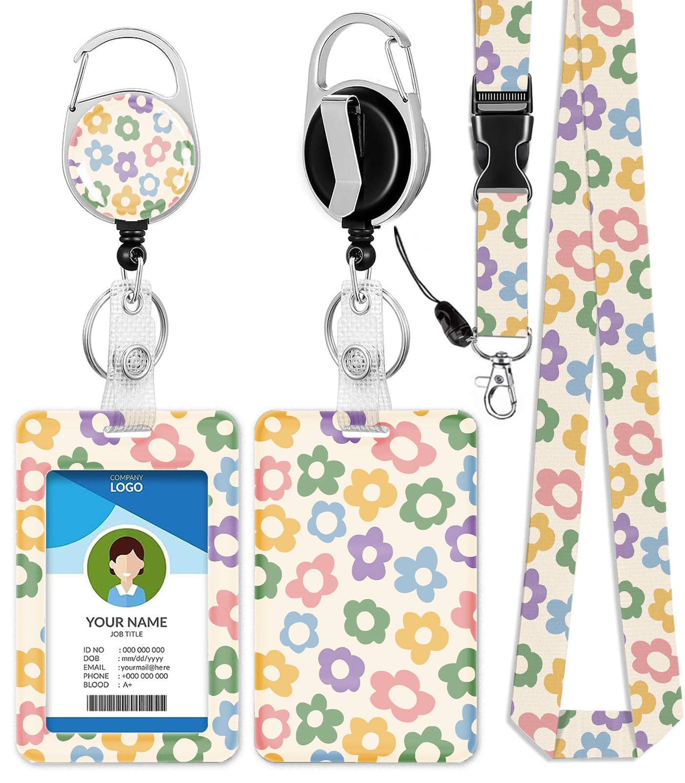 Colorful Flowers ID Badge Holder with La... |