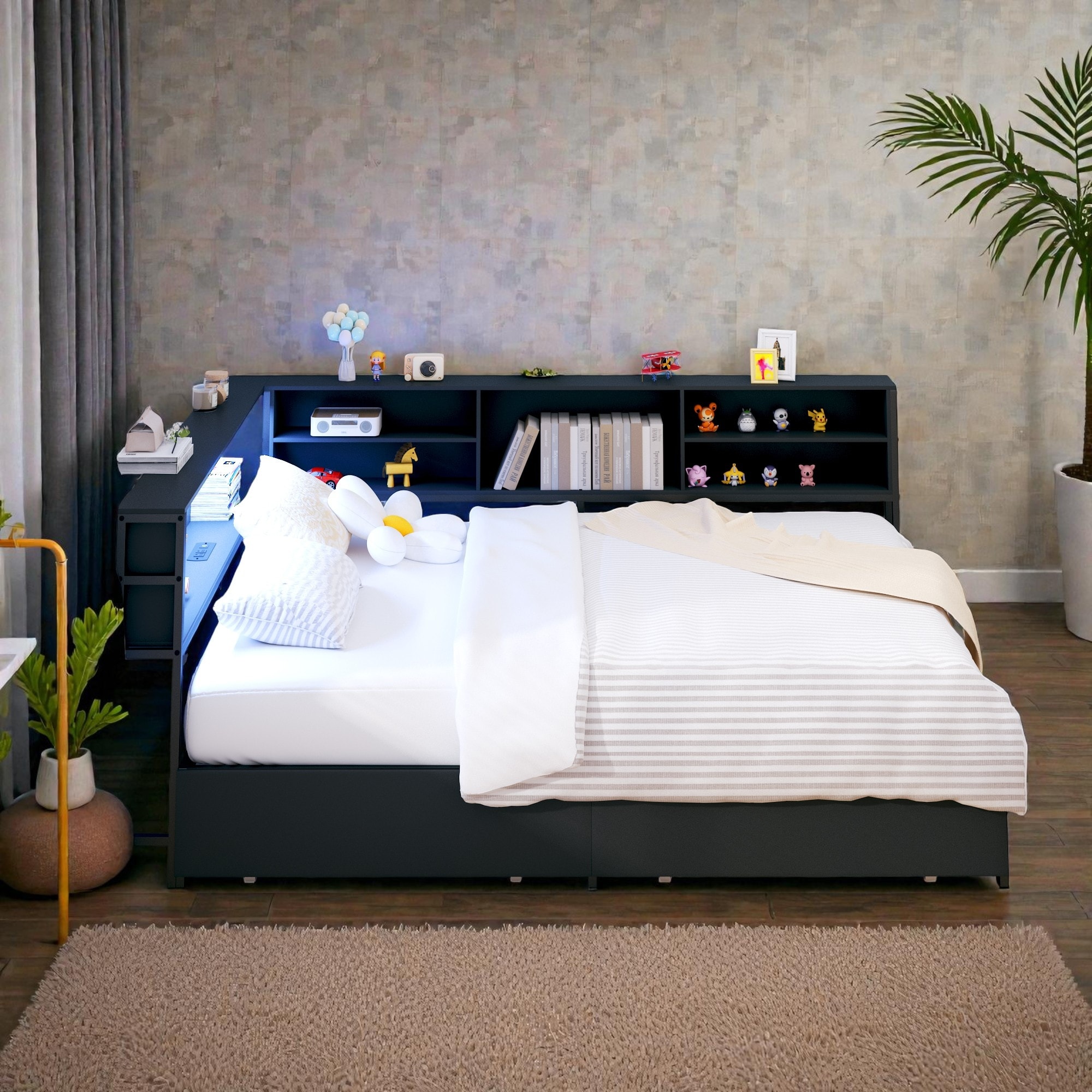 Corner Bed Frame with Storage Drawers, B... |