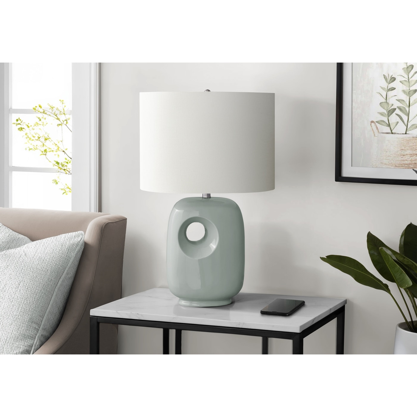 Ceramic Table Lamp with Drum Linen Shade... |