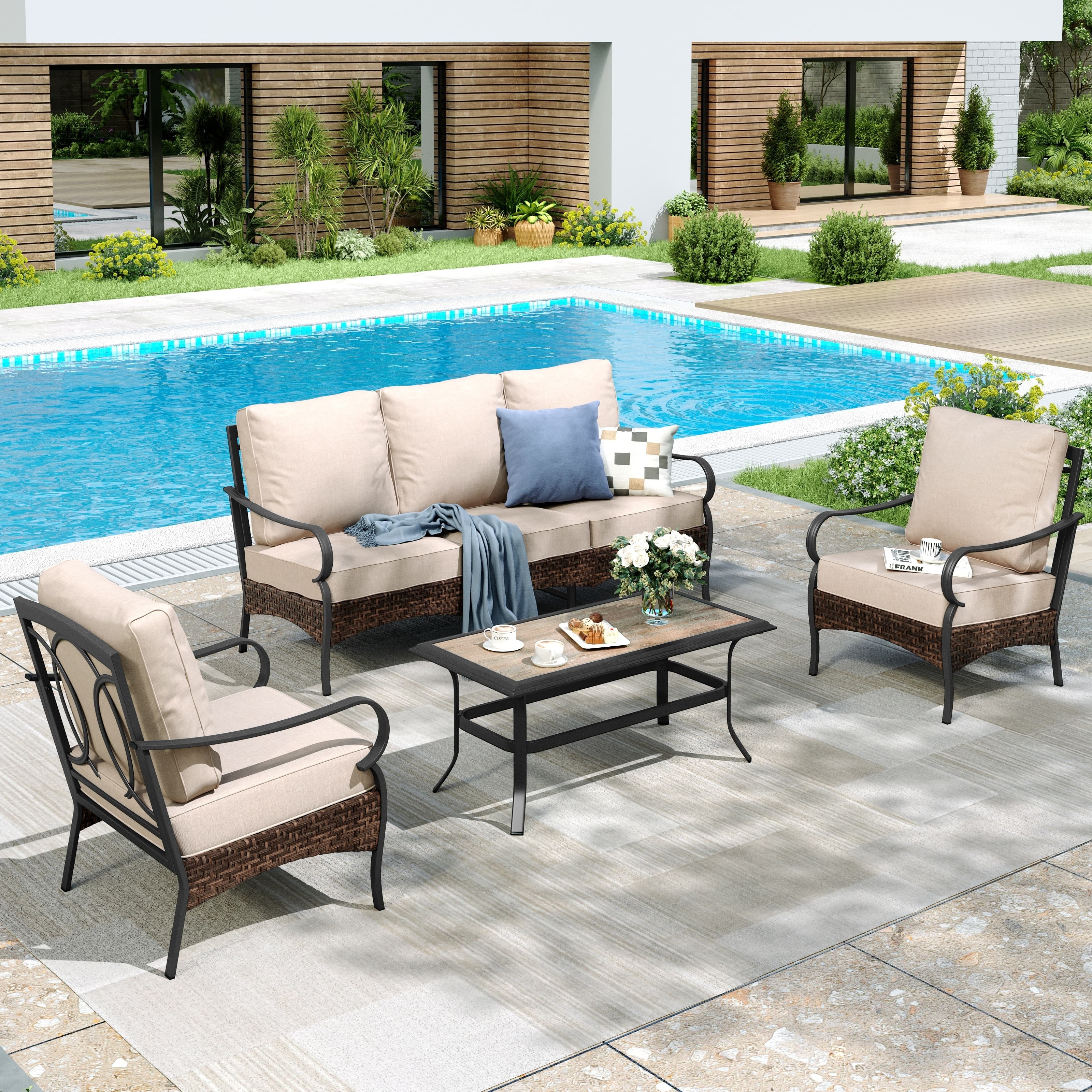 MAISON ARTS 4-Piece Rattan Wicker Patio ... |