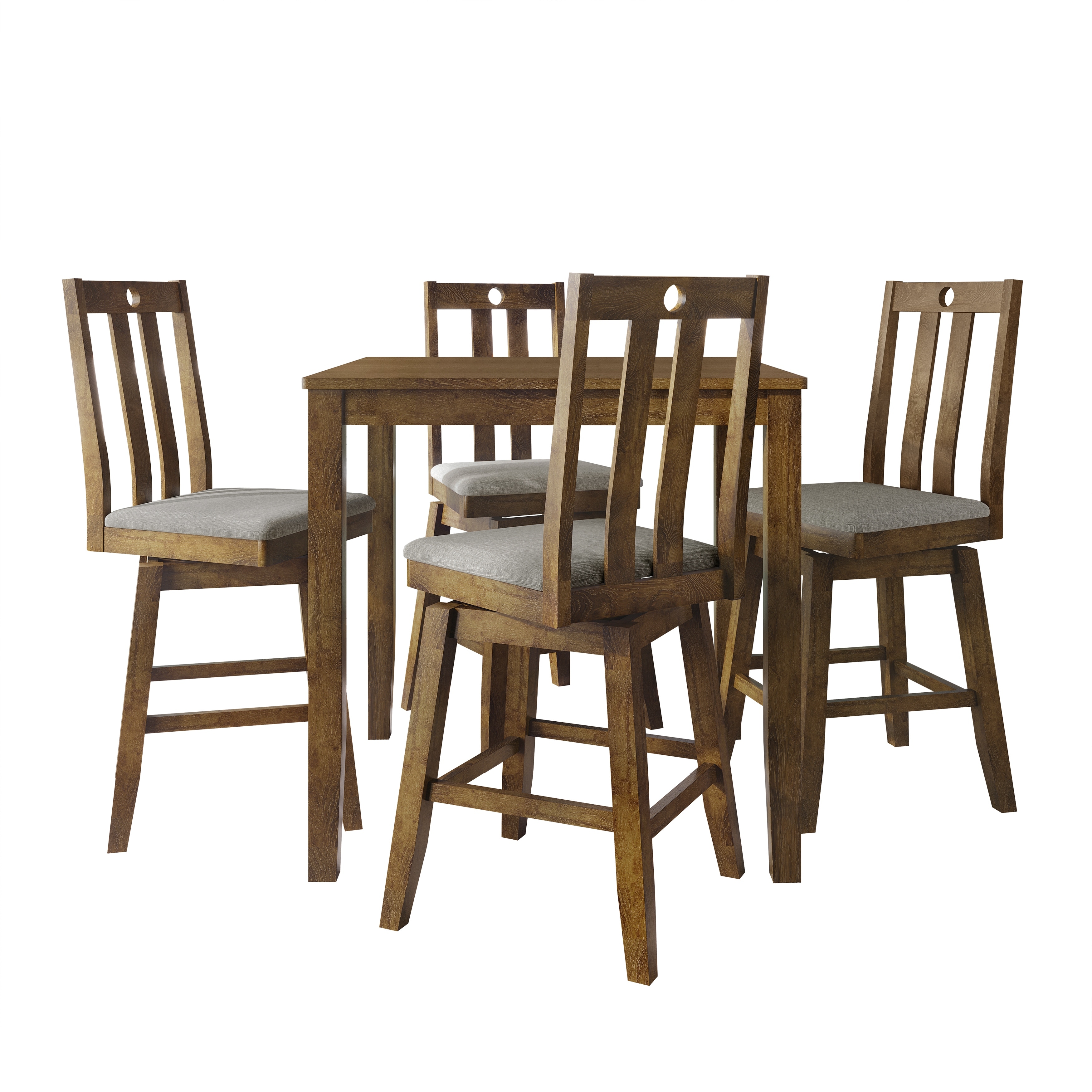 Elevate your kitchen or dining area with this elegant counter-height dining set, featuring 1 square table and 4 swivel chairs.