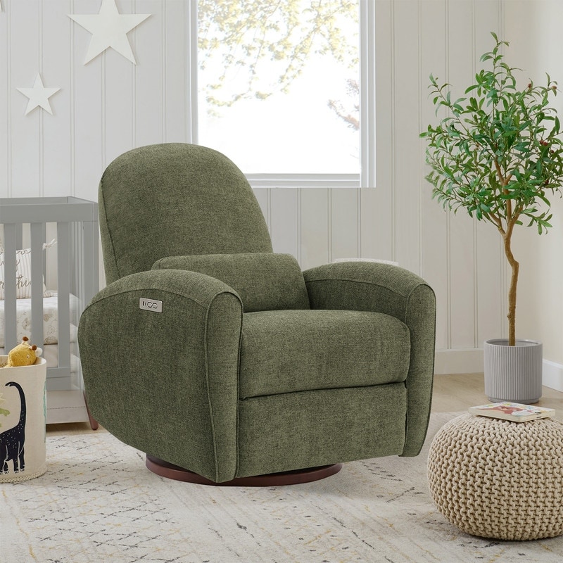 The Freya Power Swivel Glider Recliner is designed for both style and comfort. With a 270° swivel, smooth recline from 90-135°, and a solid wood base, this swivel recliner chair fits perfectly in any modern nursery or living room.