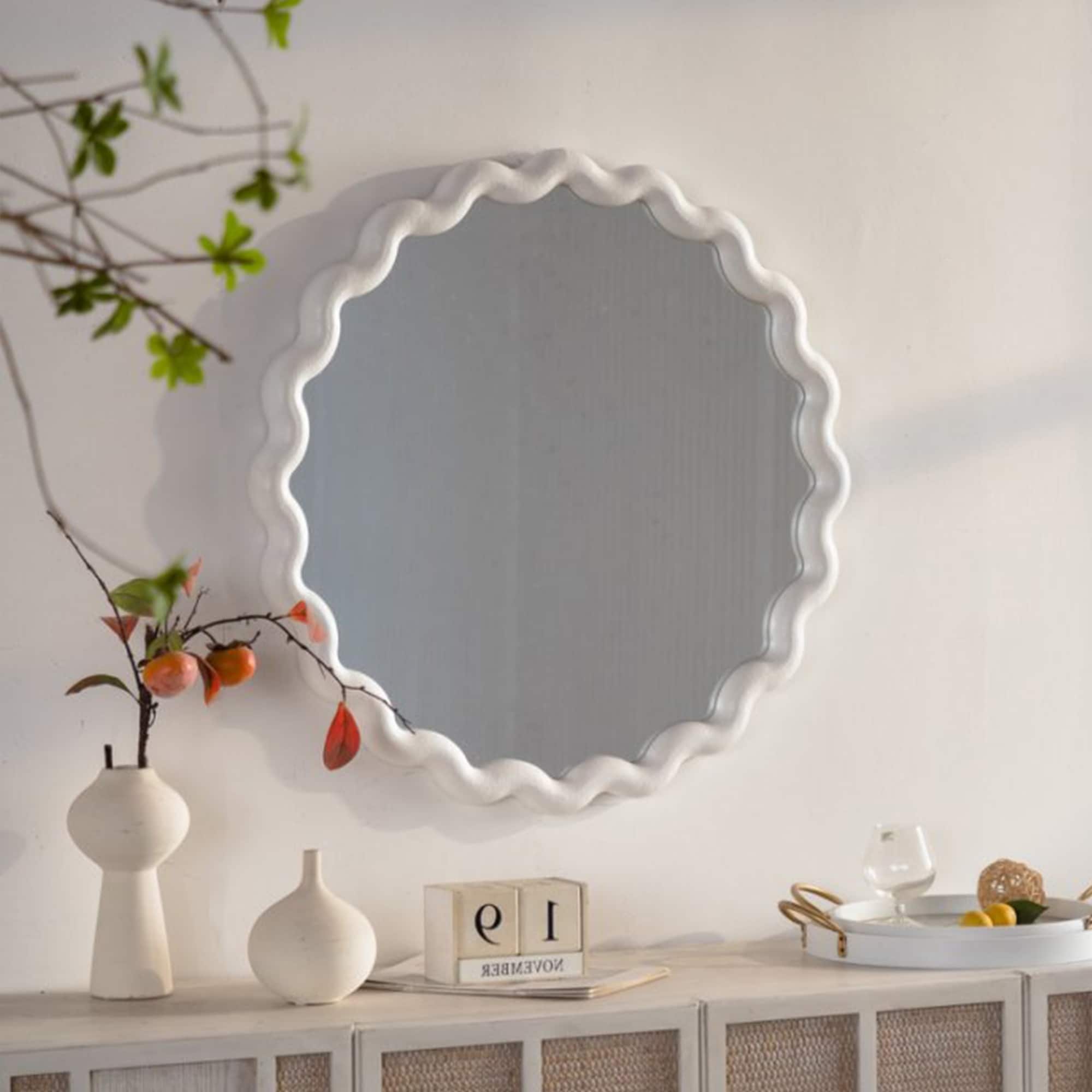 White Scalloped Round Wall Mirror - Wavy... |