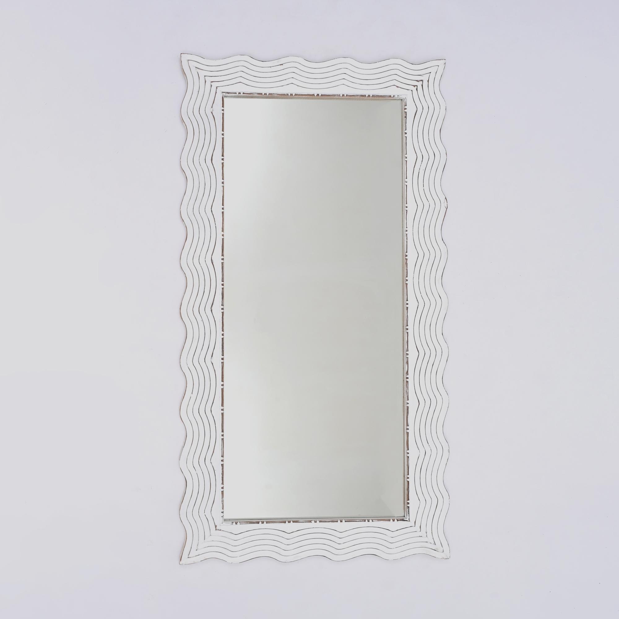 This mirror in a Weathered White Finish brings a touch of refined charm to any space with its transitional design, seamlessly blending modern simplicity with rustic warmth.