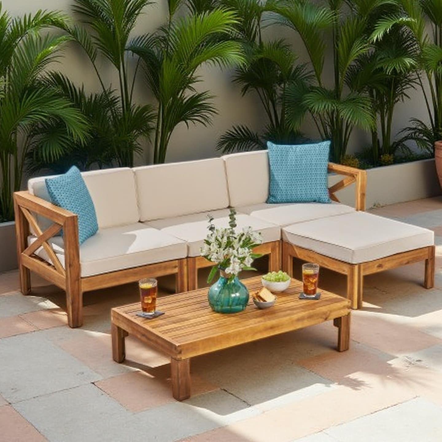 5-Piece Acacia Wood L-Shaped Outdoor Sec... |