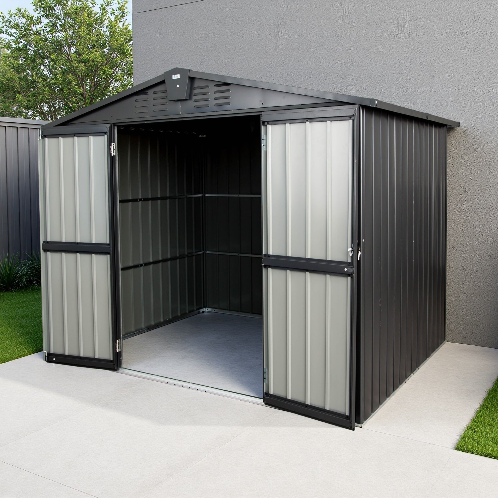 This 8x6FT compact metal storage shed maximizes small outdoor spaces with 44 sq.ft of organized storage - perfect for gardening tools, bikes, motorcycles, lawn equipment, and seasonal items, blending seamlessly into patios, backyards, or gardens without…