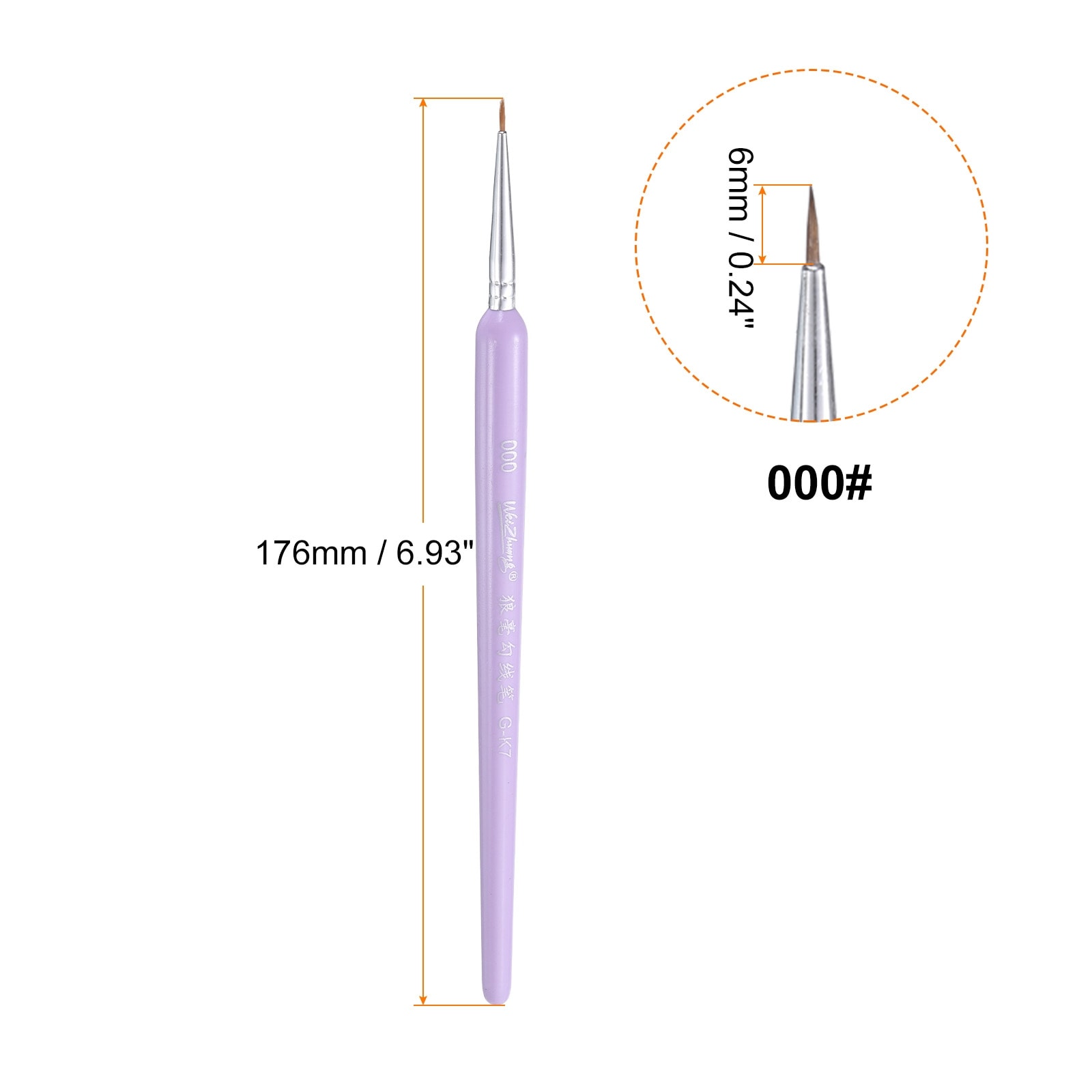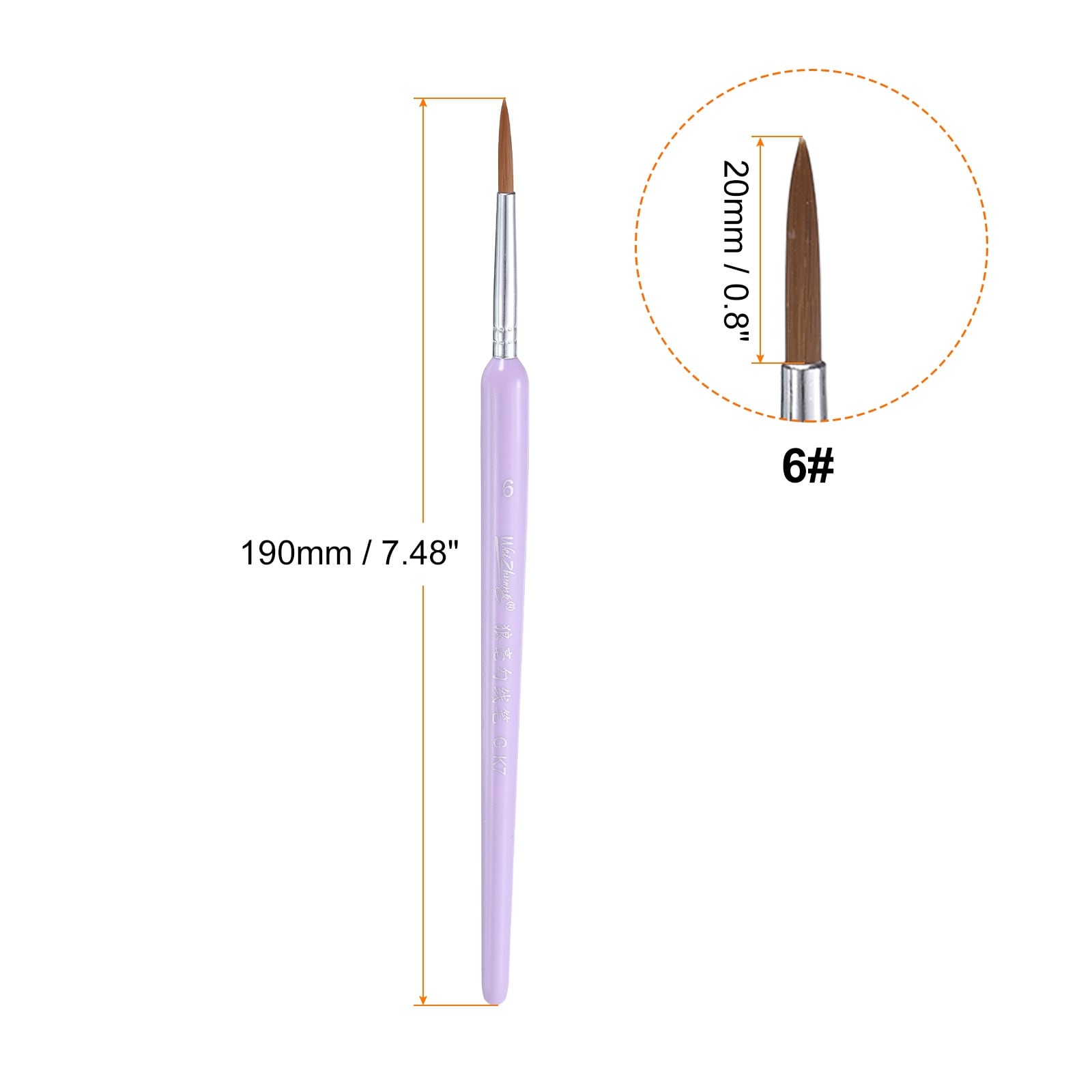 Descriptions: 1. The brush head is made of nylon bristles, has good elasticity, is not easy to fall hair, has a soft texture, smooth brush stroke, strong water absorption, easy and convenient to dip paint.
