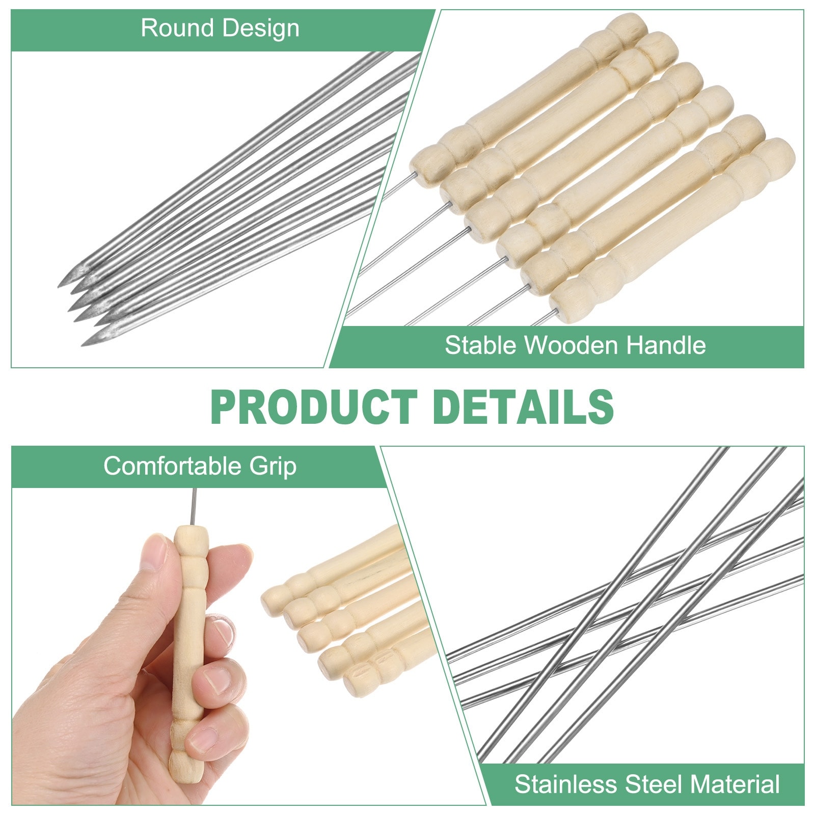 Kabob Skewers with Wood Handle, Metal Sk... |
