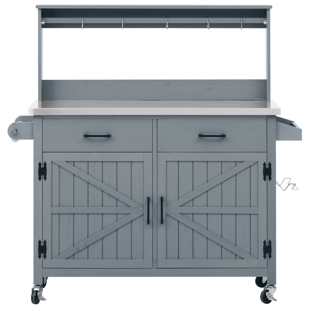 Product Features Space-Saving Foldable Stainless Steel Surface - The kitchen island is equipped with a durable, rust-resistant stainless steel top that provides a smooth, easy-to-maintain work surface.