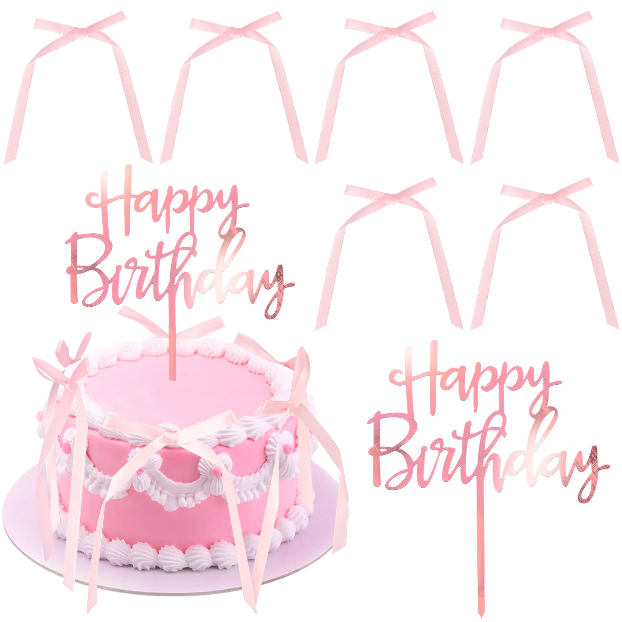 7 PCS Bow Cake Toppers with Acrylic Happ... |
