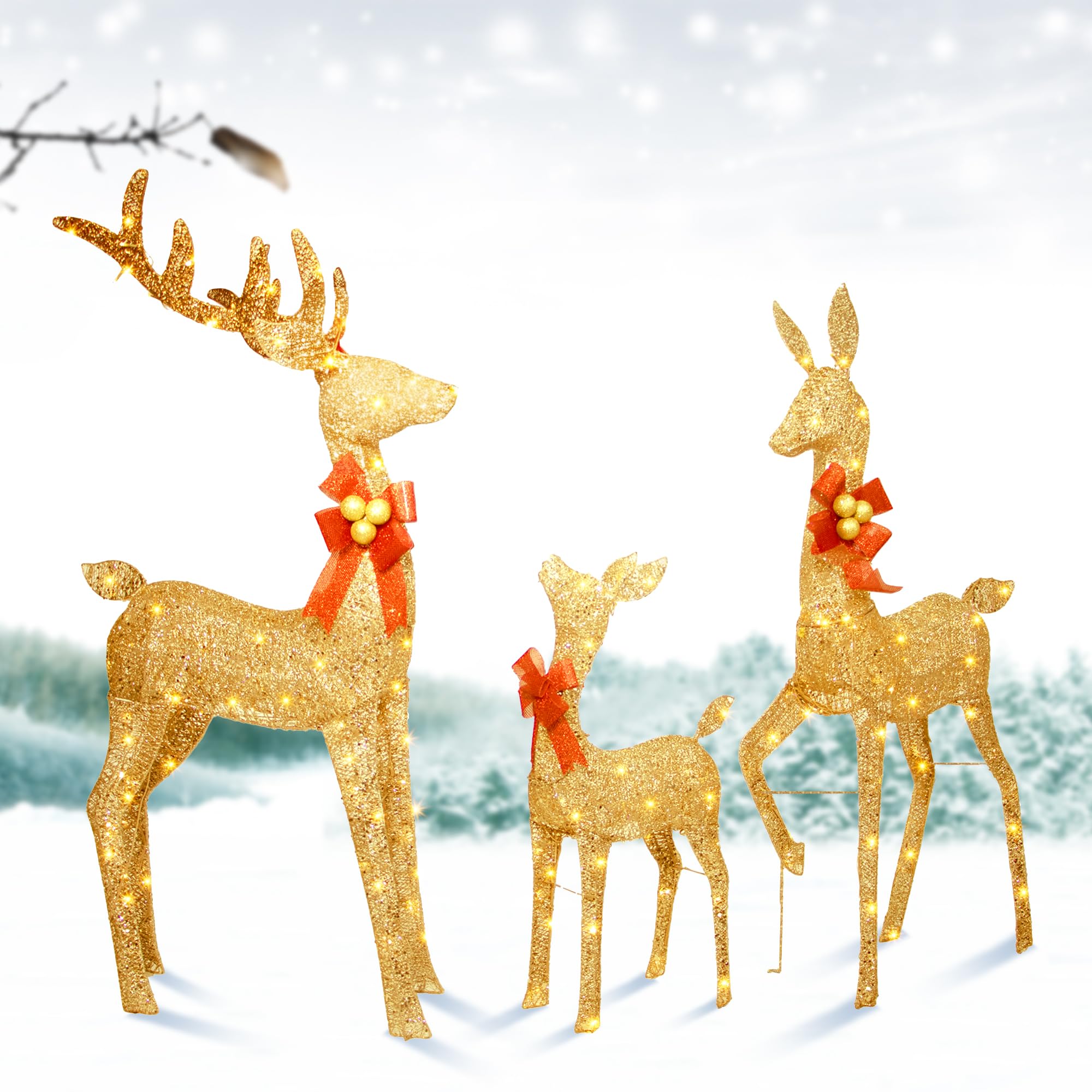 Large Gold Reindeer Family Set - 3D Outd... |