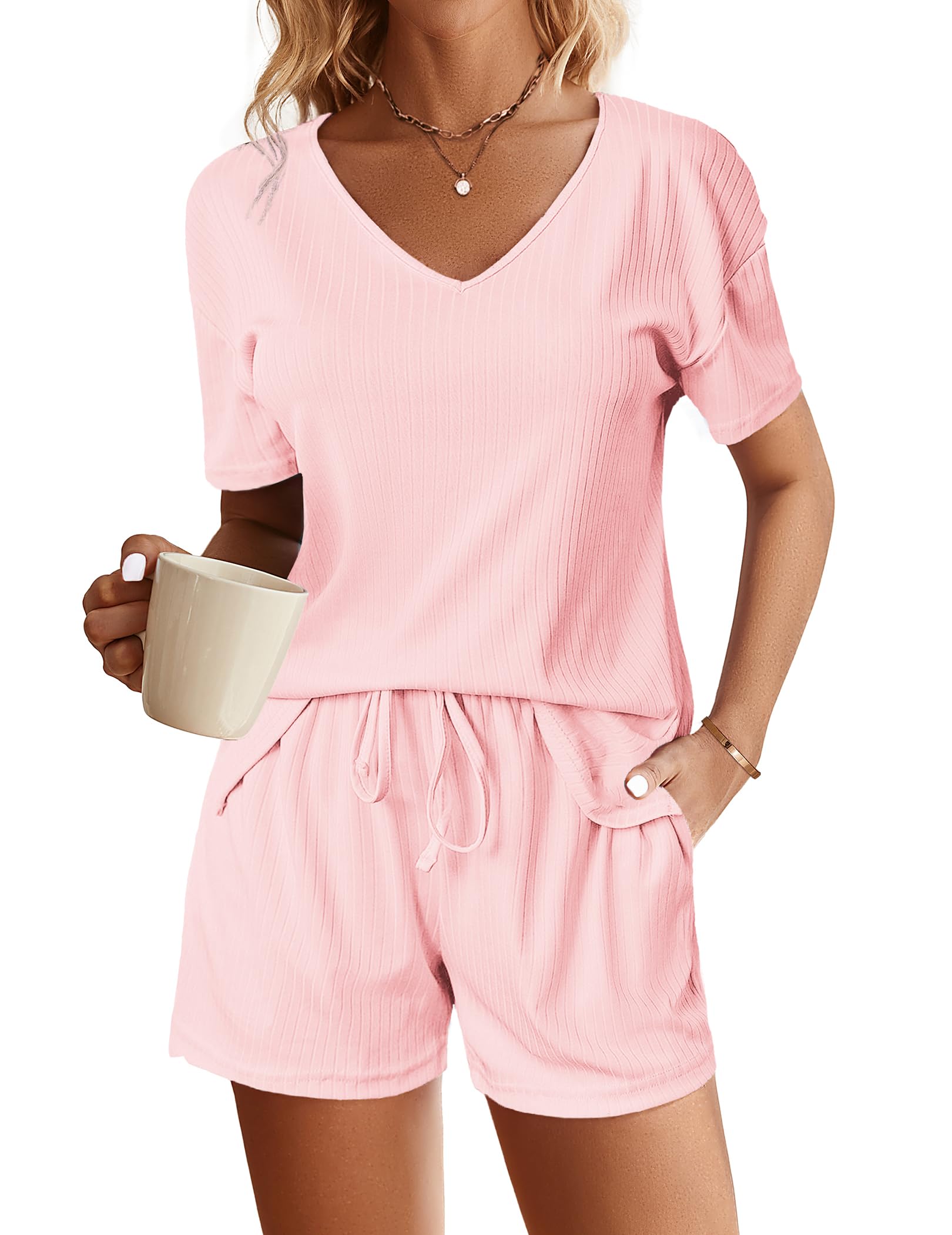 Ekouaer Womens Ribbed Knit Lounge Set Sh... |