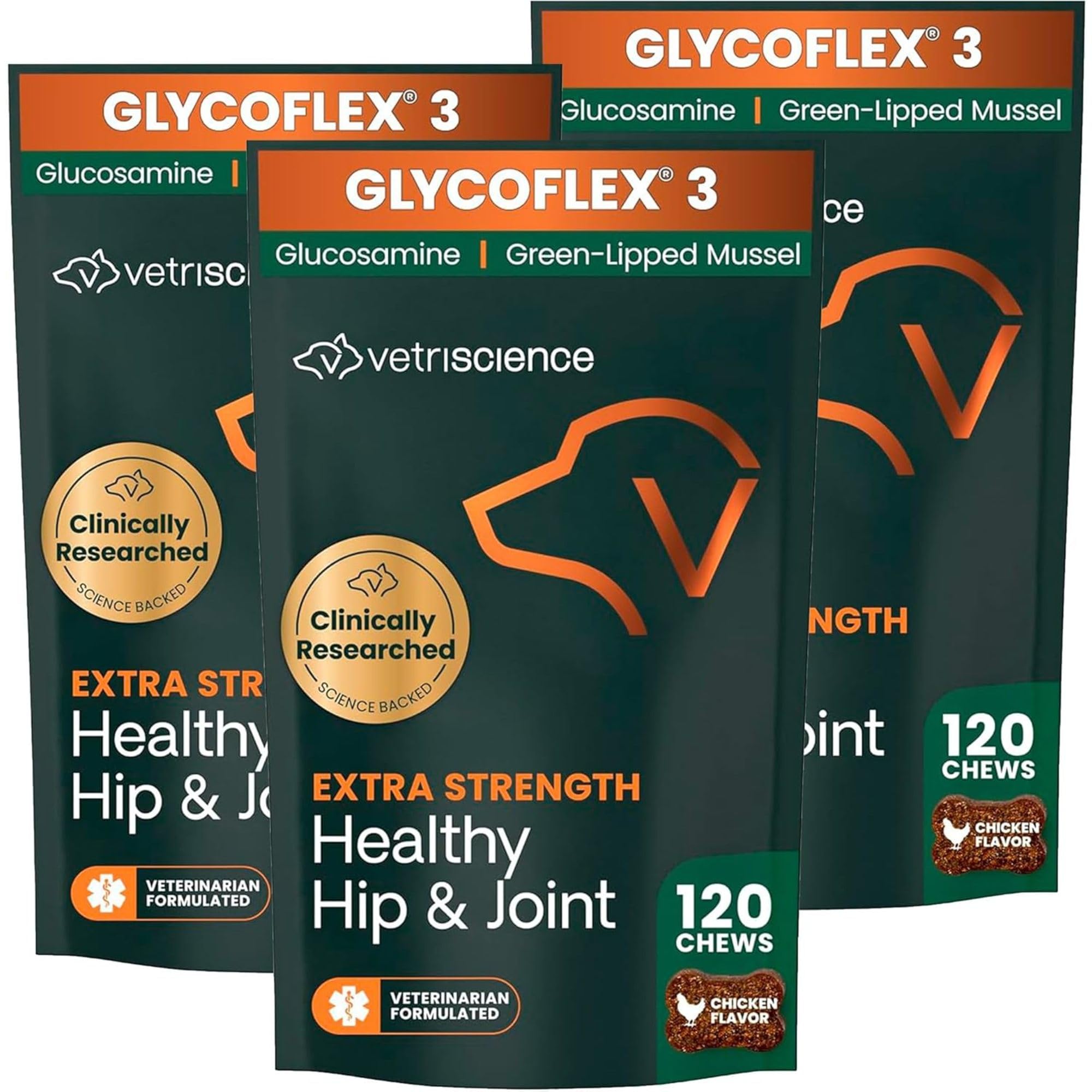 Glucosamine for Dogs: Extra Strength Healthy Hip & Joint (previously GlycoFlex Stage 3) is our advanced-strength hip and joint supplement for dogs, with powerful levels of active ingredients that work together to help maintain mobility, lubricate joints, and support flexibility Powerful Ingredients: Extra Strength Healthy Hip & Joint for dogs combines 10 active ingredients including green lipped mussel, glucosamine and MSM, DMG, and antioxidants to help improve joint integrity, strength, mobility, and function For Active & Senior Dogs: Bite-sized hip and joint chews are ideal for dogs that are slowing down or showing signs of fatigue or weakness in their hind quarters as well as active dogs, competitive dogs and dogs that are recovering from orthopedic surgery High-Quality Ingredients: Our vet-formulated dog joint supplements are certified by the National Animal Supplement Council (NASC), routinely undergo third-party testing, and contain no hidden ingredients, artificial flavors, or synthetic colors Delicious Chicken-Liver Flavor: These glucosamine and green-lipped mussel joint chews are like a treat for dogs of all ages, breeds, and sizes