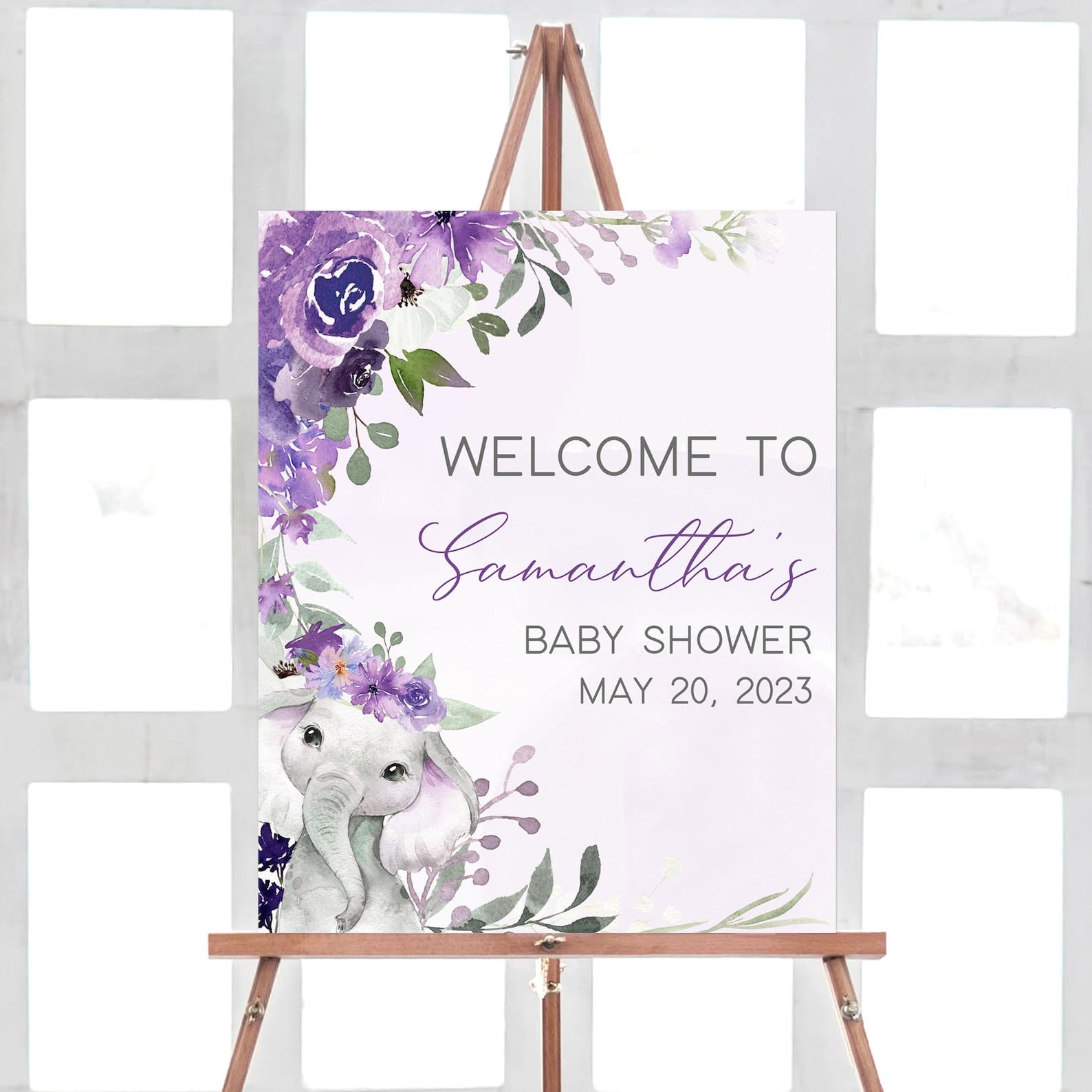 Purple Elephant Baby Shower Welcome Sign... |