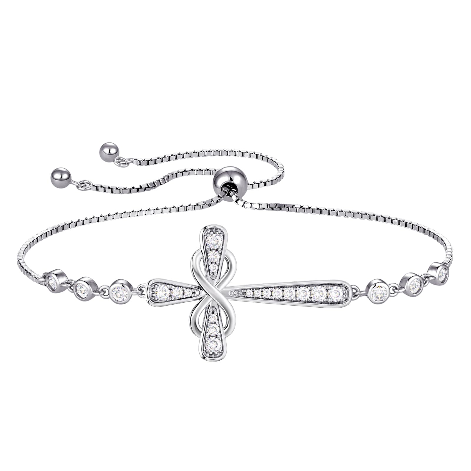 YL Design: Infinite love, vitality, infinite possibilities Material: 925 sterling silver with rhodium plated Size: Cross bracelet high: 1.02" (26 mm) , 1mm silver box chain: 9.84 " (250 mm) Birthstone: Set with round-cut 5A cubic zirconia Package: Come with YL jewelry box YL Cross Bracelet 925 Sterling Silver Infinity Sideways Bracelet Cubic Zirconia Jewelry for Women