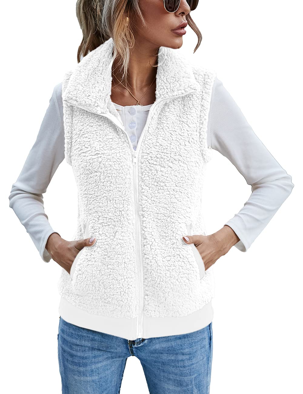 LOMON Womens Fuzzy Fleece Vest, Casual W... |