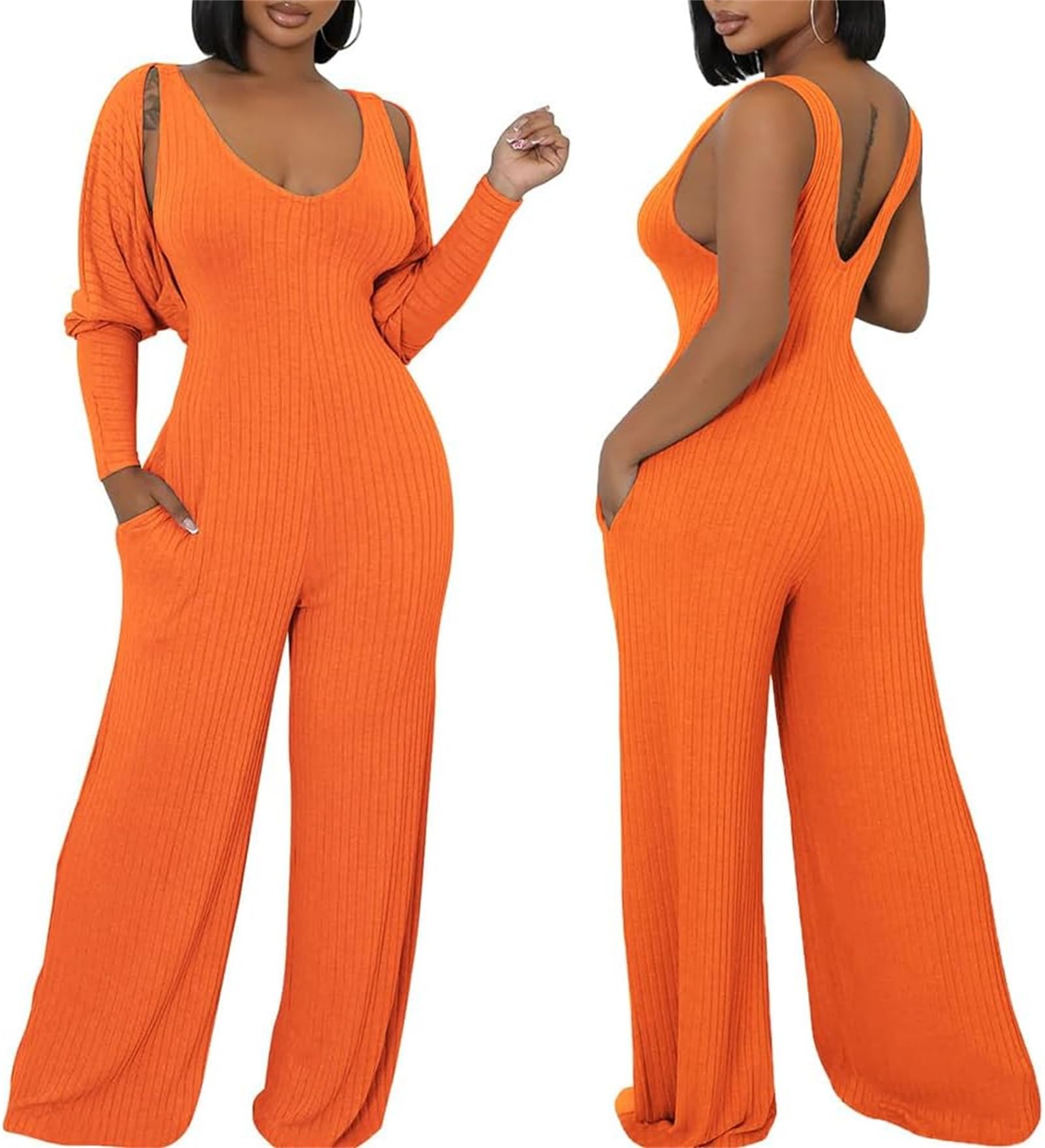 Women's Casual 2 Piece Outfits Ribbed Kn... |