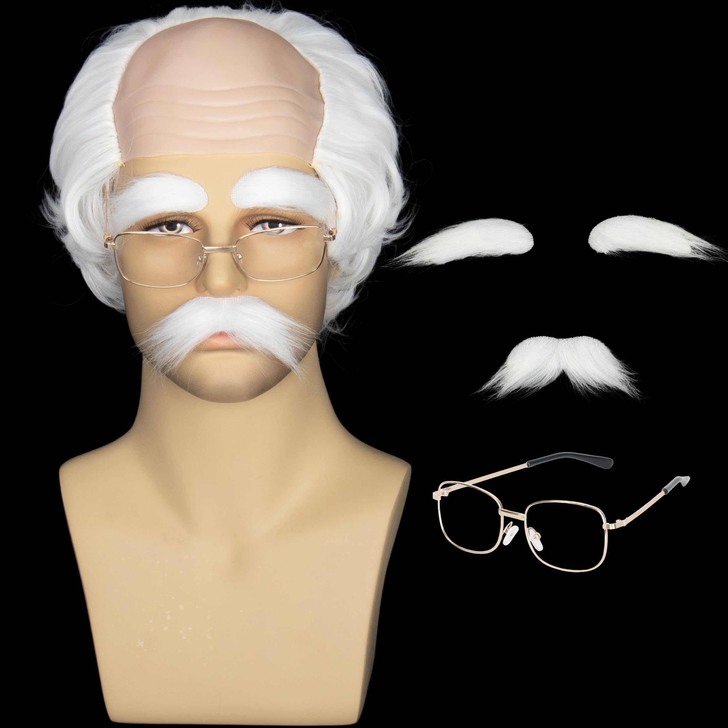 Cosela White Old Man Wig and Glasses Mus... |