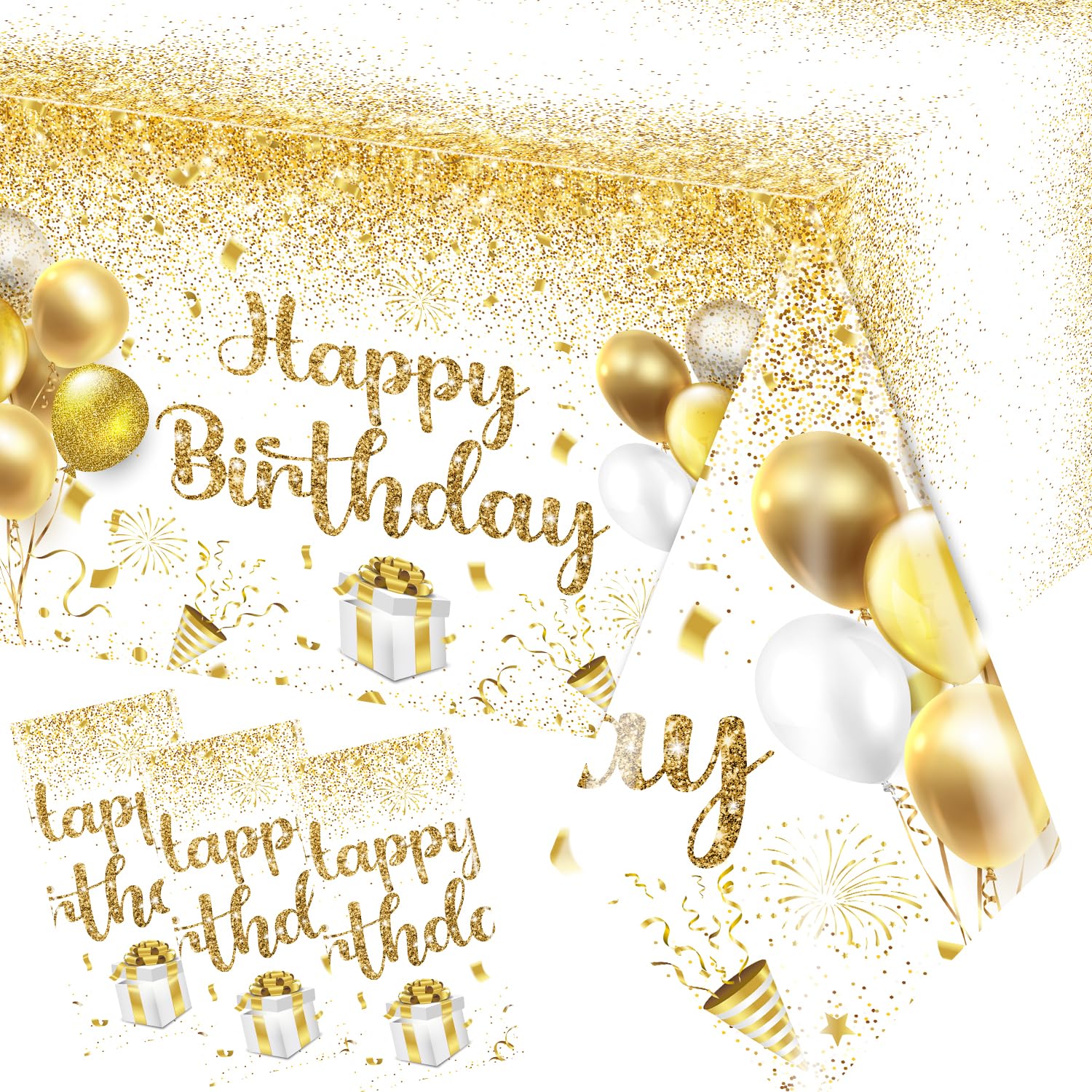 Happy Birthday Tablecloths - Gold & Whit... |