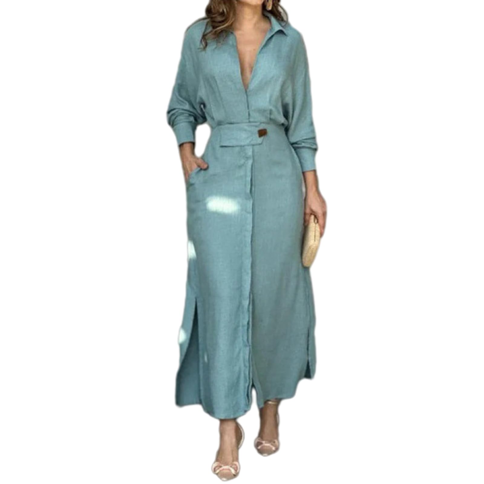 Linen Dress,Women's Long Sleeve Button D... |