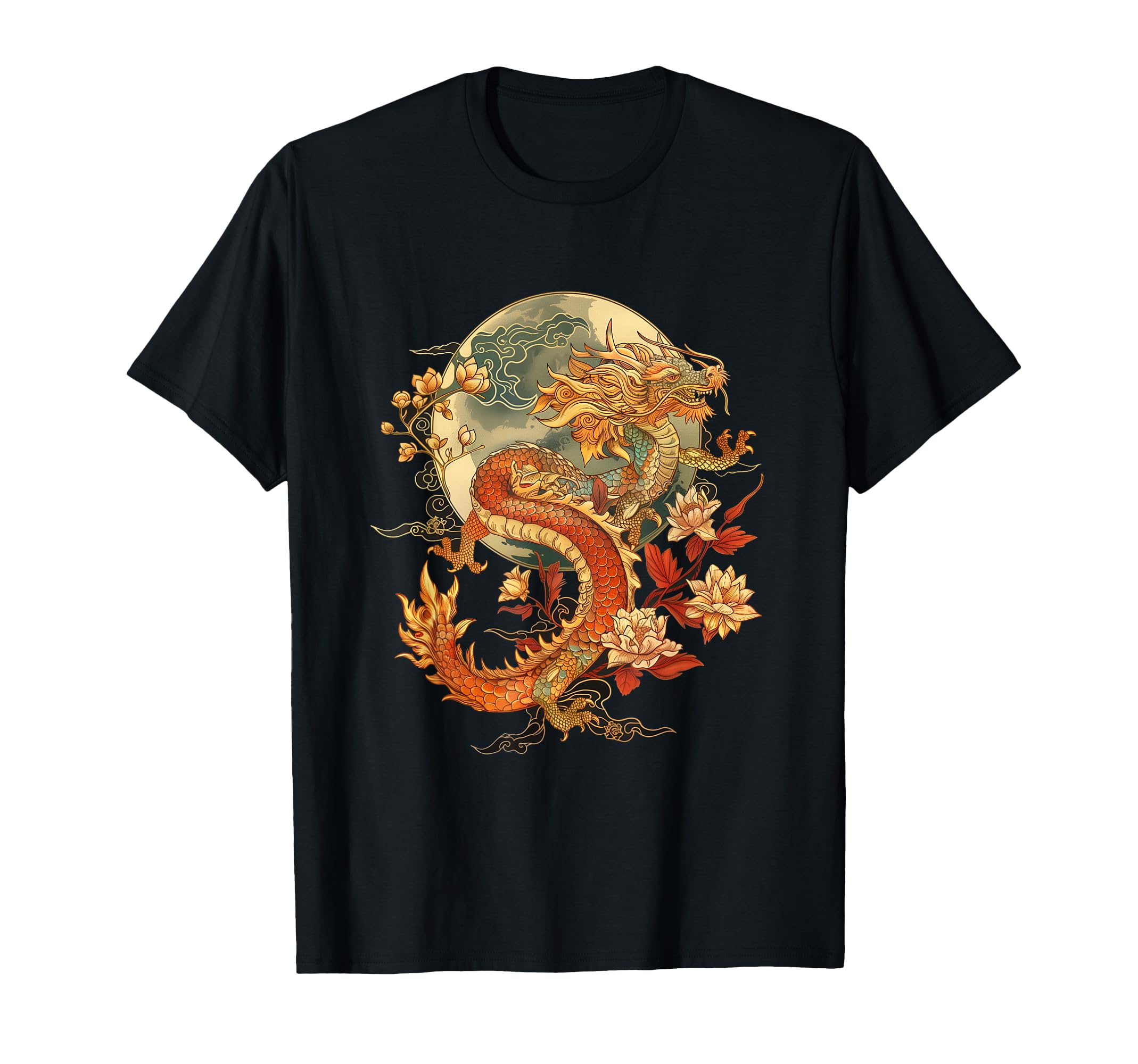 Crimson Lunar Floral Dragon Art Noveau T... |