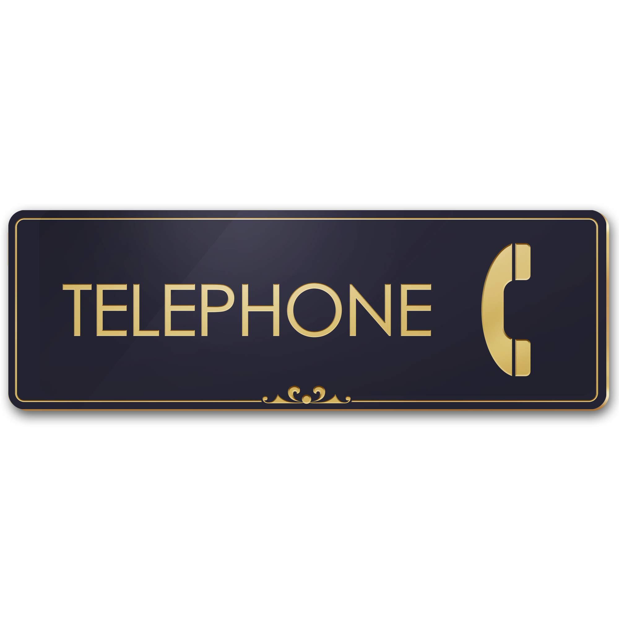 Telephone Sign, Black/Gold, Engraved, 3"... |