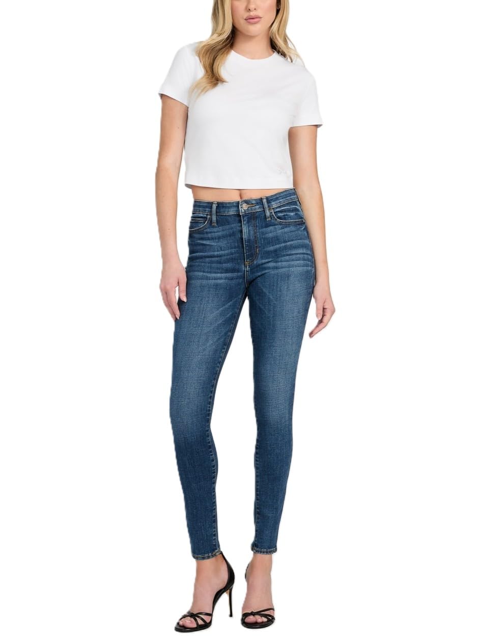 ECO-FRIENDLY MATERIALS - These jeans are crafted from a fabric blend of 74% cotton, 23% REPREVE (a recycled polyester fiber), and 3% Elastane/Spandex. The inclusion of REPREVE showcases GUESS's commitment to sustainability by using recycled materials in their products. PERFECT FIT - With a 10" front rise and 14" back rise, these jeans for women offer a high-rise, on-trend, and flattering style. The 9.75" leg opening and 29" inseam provide a sleek, skinny fit, making these jeans versatile and easy to pair with different tops and shoes. Chic, sustainable, and stylish, these jeans are perfect for any modern wardrobe. SMART GUESS COLLECTION - The High Rise 1981 Skinny Jeans are part of the SMART GUESS Collection. This collection embodies fashion-forward design while integrating eco-conscious practices. By wearing these jeans, you're making a sustainable choice in your fashion. CHIC ZIPPER CLOSURE - The GUESS Women's High Rise Skinny Jeans don't just rely on traditional button closures. They feature a sleek zipper closure that adds a contemporary and stylish touch and makes dressing and removal a breeze. The zipper accentuates the modern design of these women's jeans, elevating them beyond essential denim wear. This functional and fashionable detail is perfect for those who appreciate practicality and aesthetics in their clothing. SUSTAINABLE FASHION CHOICE - By choosing these stylish Jeans, you're making a statement with your style and embracing a sustainable fashion choice. The jeans are part of the SMART GUESS Collection, highlighting GUESS's commitment to eco-conscious practices. Crafted with recycled materials, including REPREVE, these jeans let you express your fashion sensibilities while being environmentally responsible.