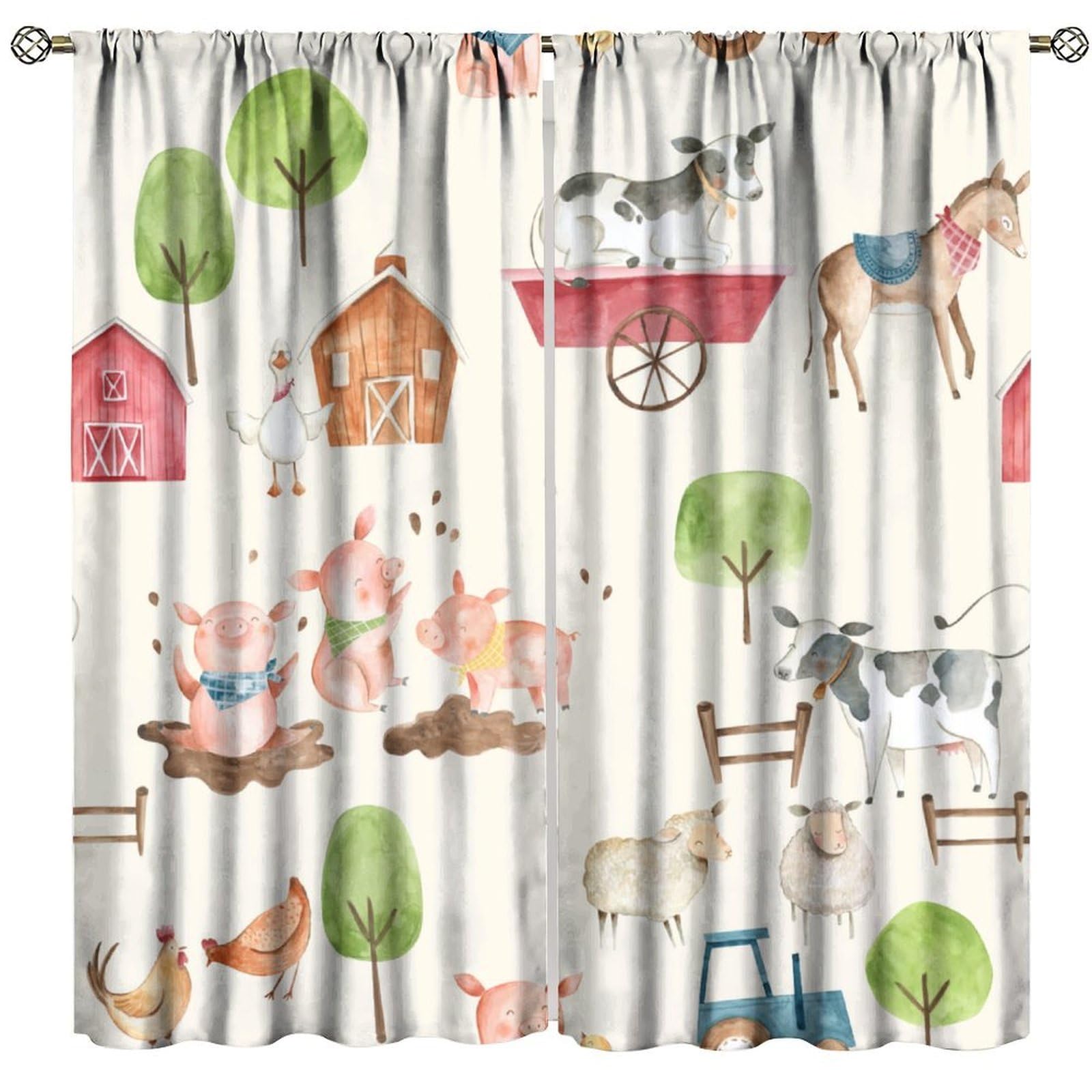 Cartoon Farm Curtains for Baby, Cute Wat... |