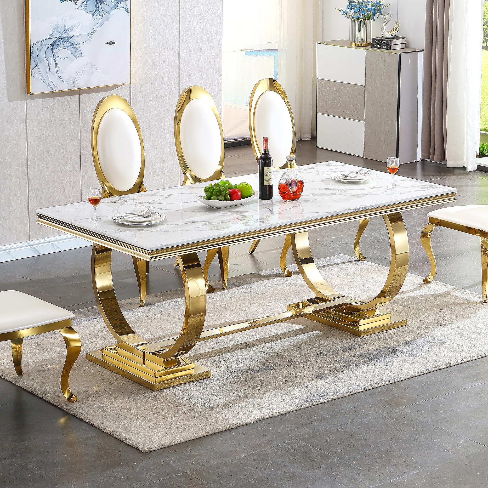 Goujxcy White Marble Dining Table Luxury... |