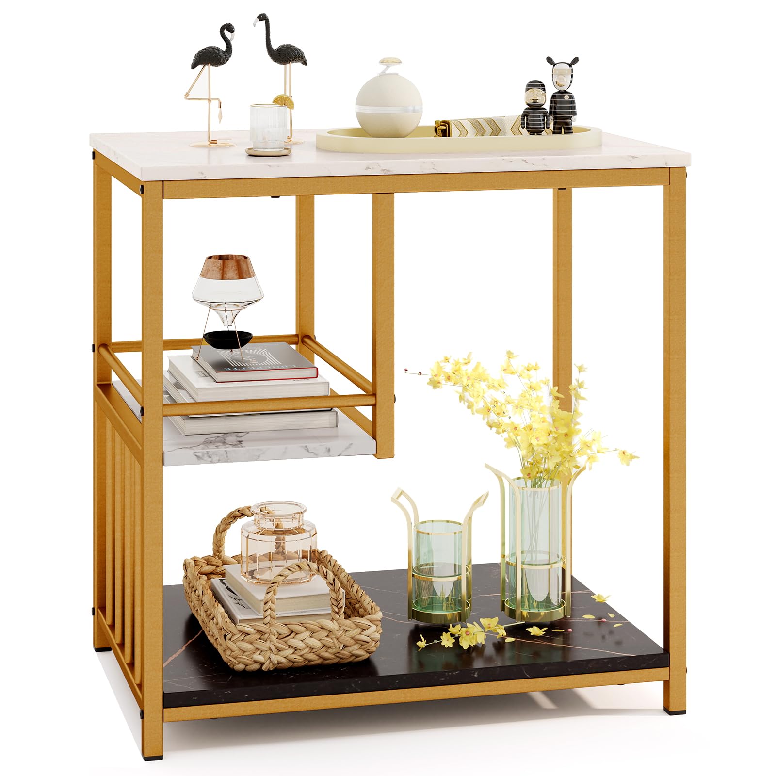 GOFLAME Faux Marble End Table, 3-Tier So... |