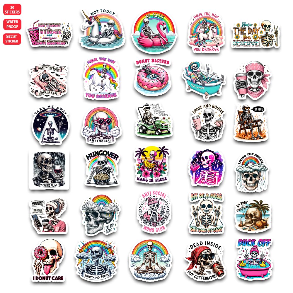 Funny Skeleton Stickers, 30 Pack Waterpr... |