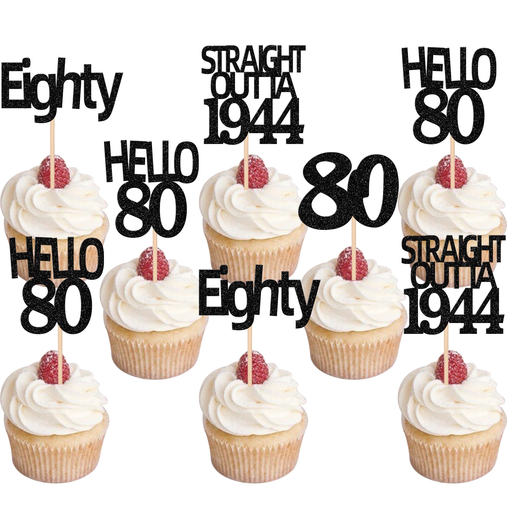 24 PCS Black 80th Birthday Cupcake Toppe... |