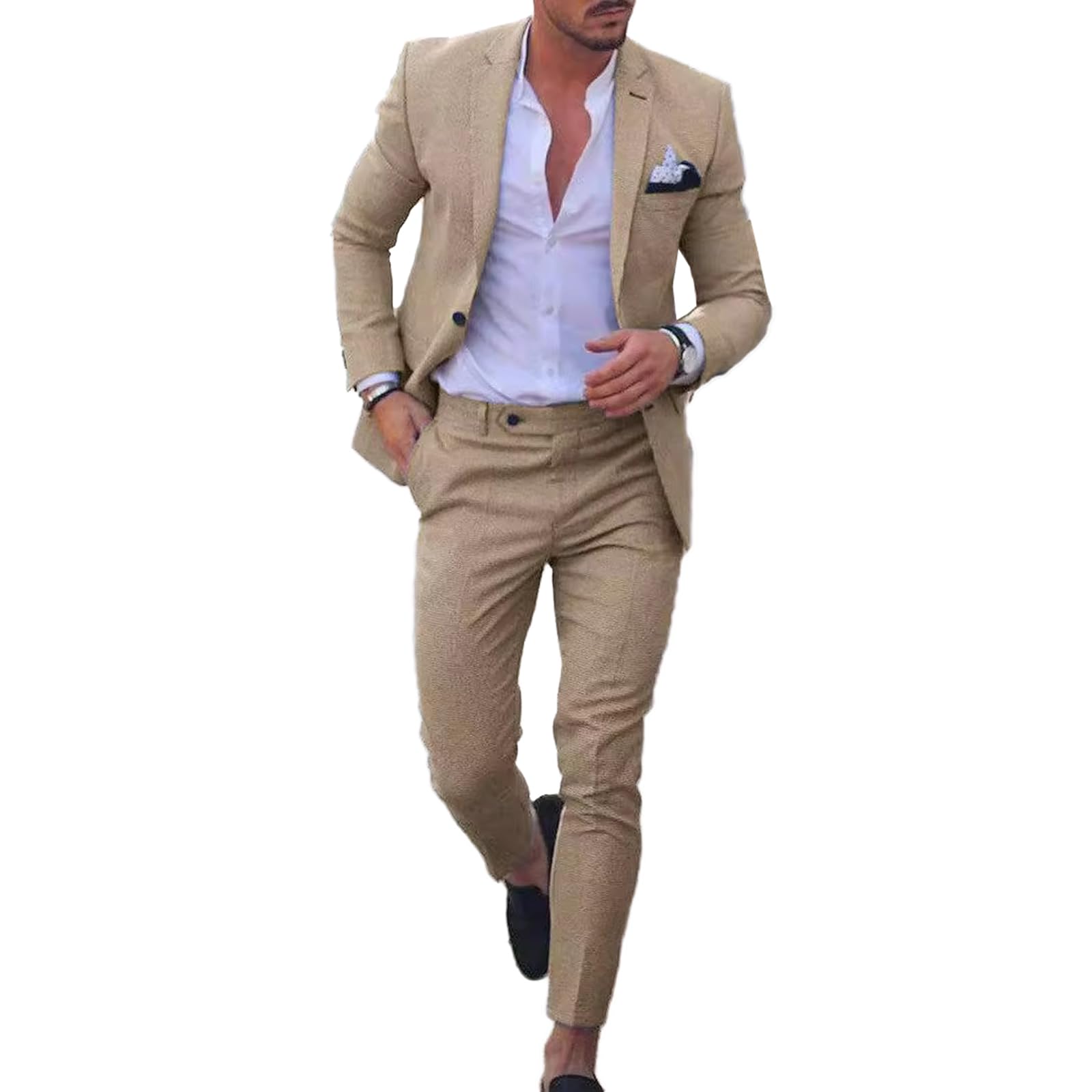 UNINUKOO Mens 2 Piece Suit Linen Summer ... |