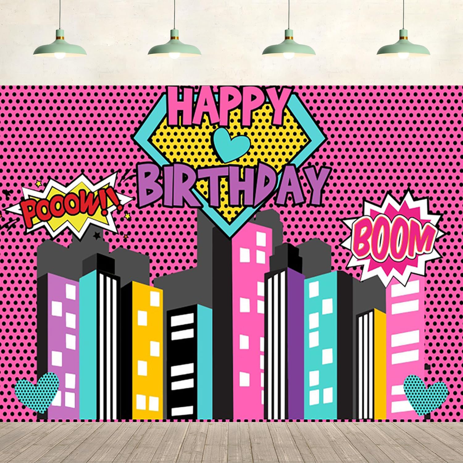 7x5ft Superhero Cityscape Happy Birthday... |