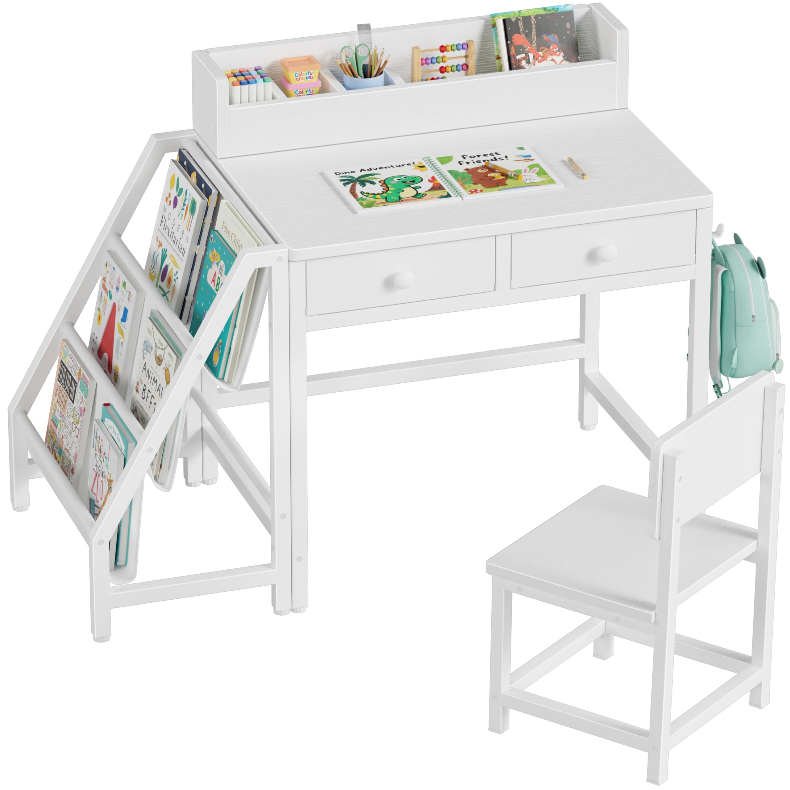 MomZi White Kids Desk and Chair Set for ... |