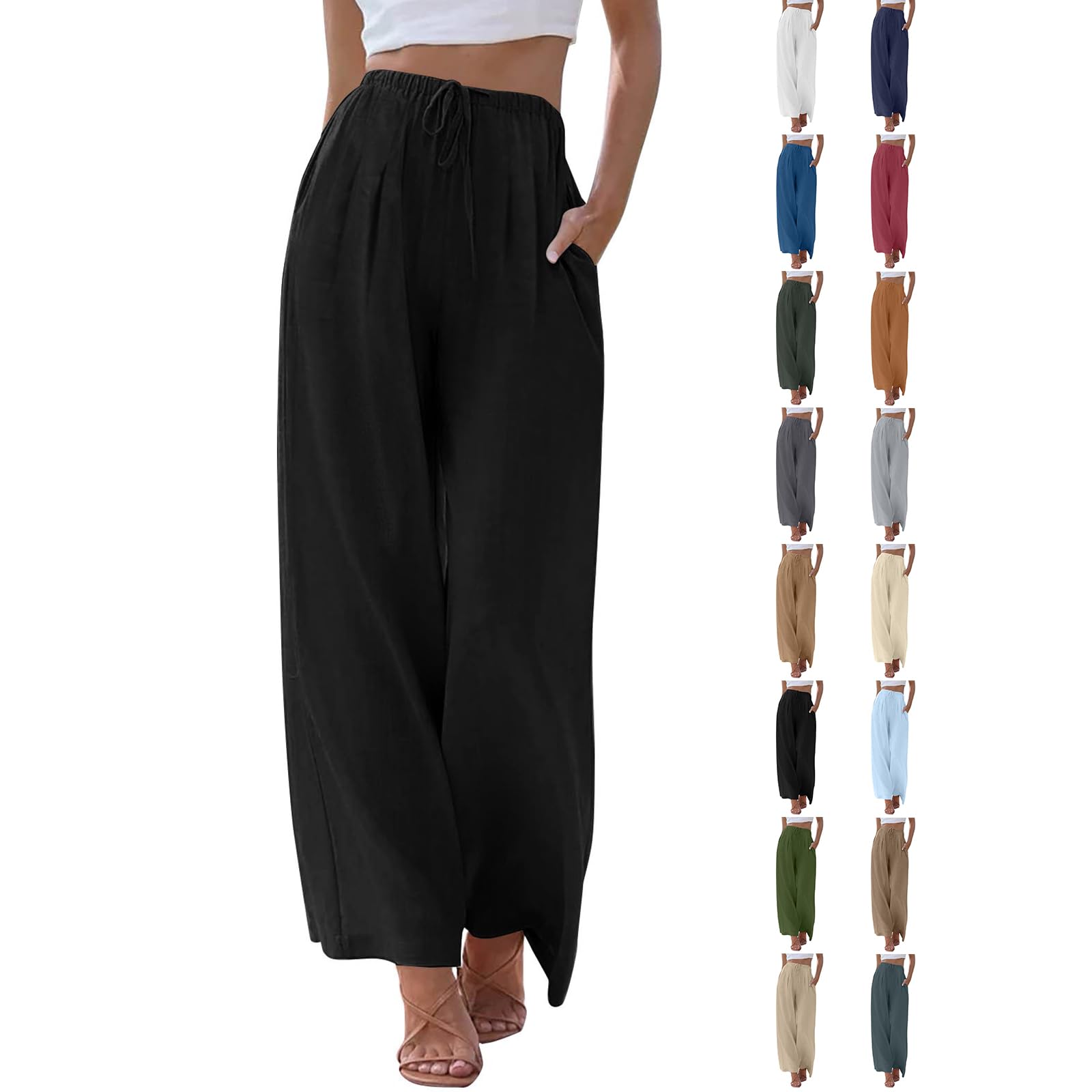 chaktkglok Flowy Wide Leg Linen Pants Wo... |
