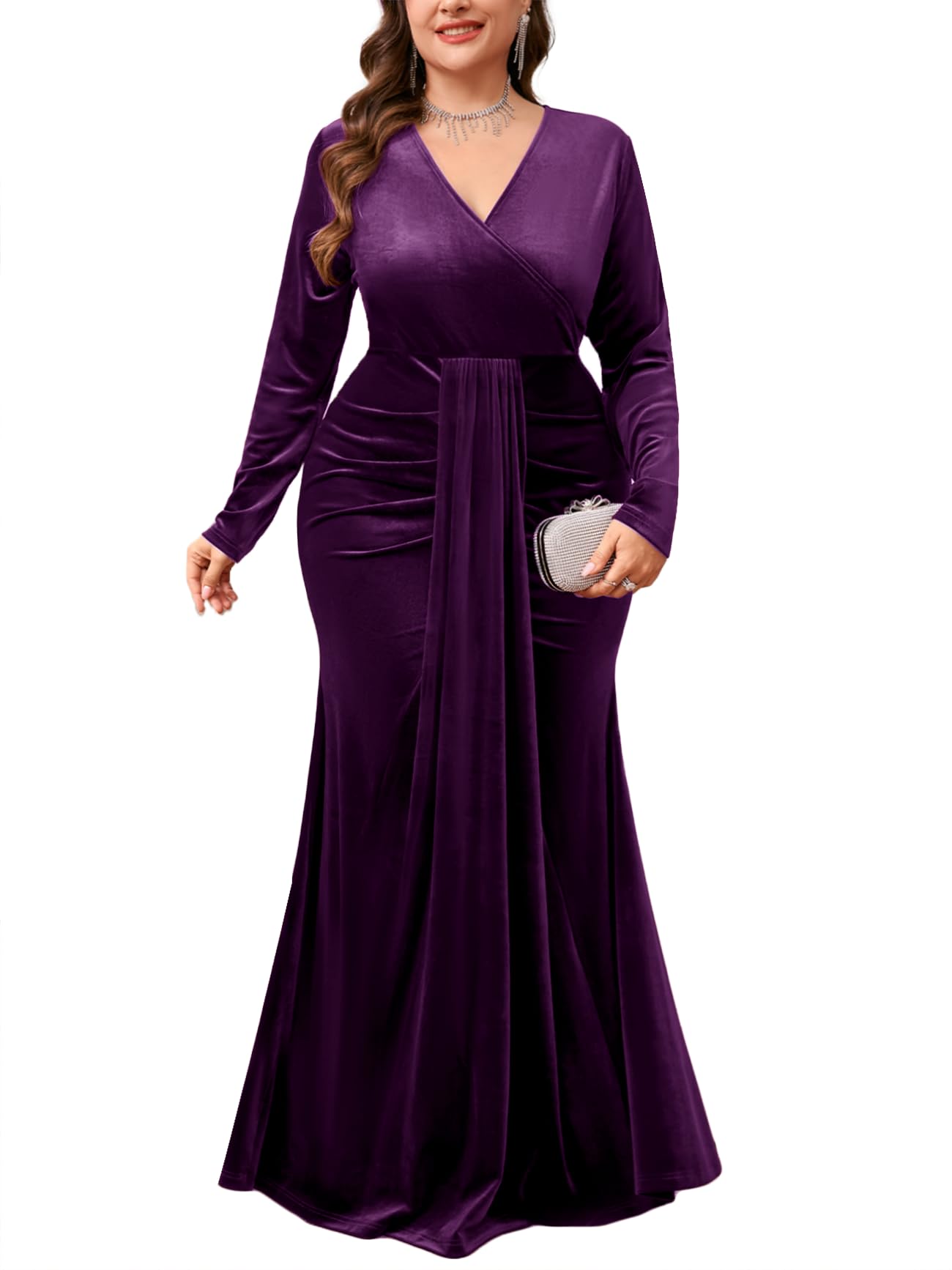 ZOMVA Plus Size Velvet Wrap Dress Long S... |