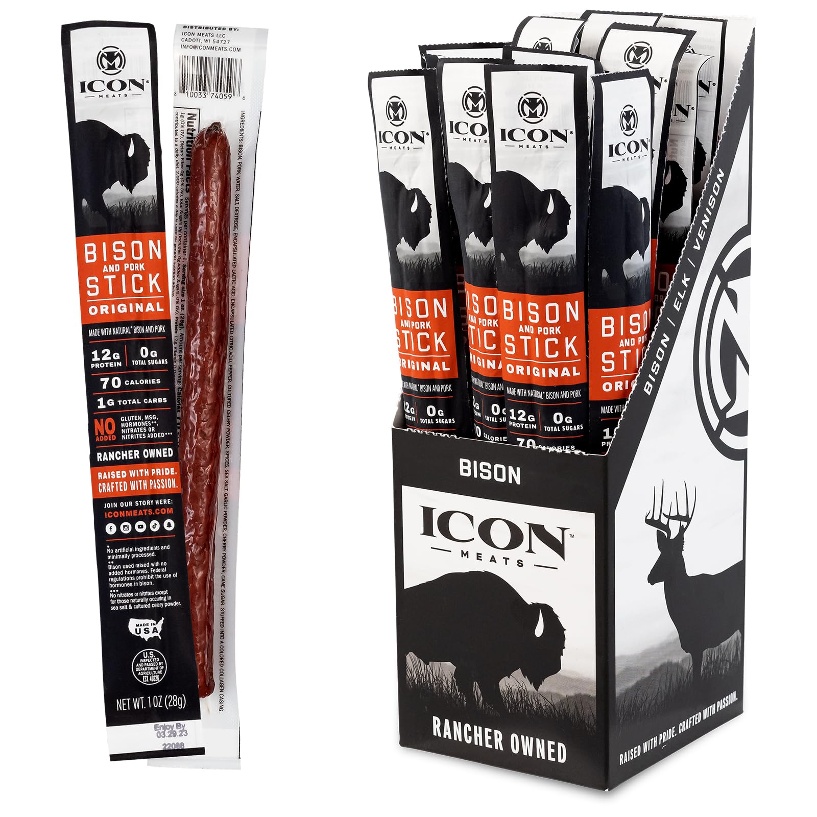ICON Meats Bison and Pork Snack Sticks, ... |