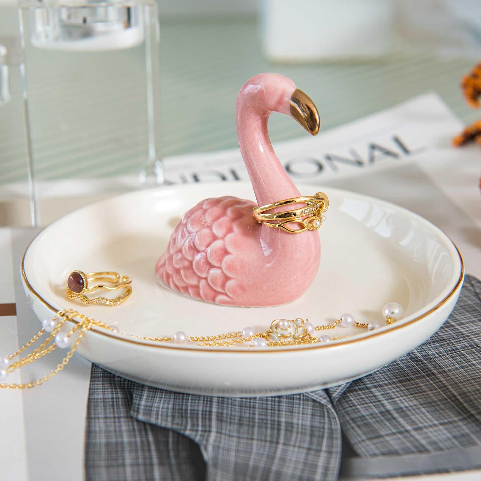 TOPSKINOY Flamingo Ring Holder Dish, Cer... |