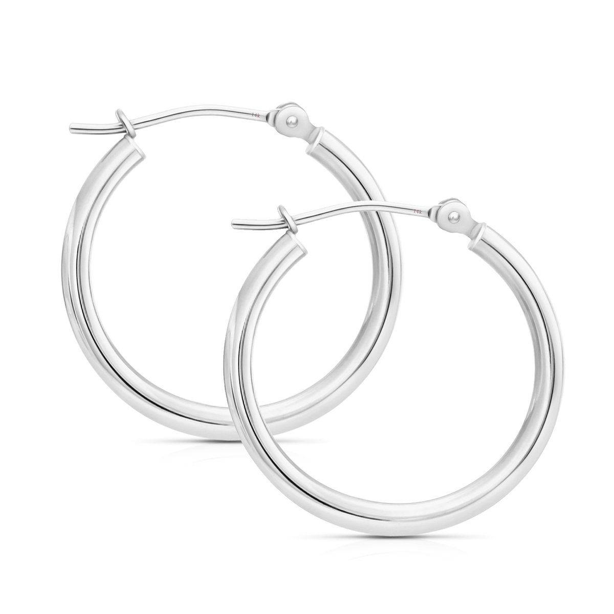 14k White Gold Plain Hoop Earrings, Poli... |